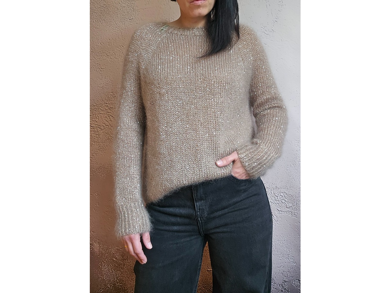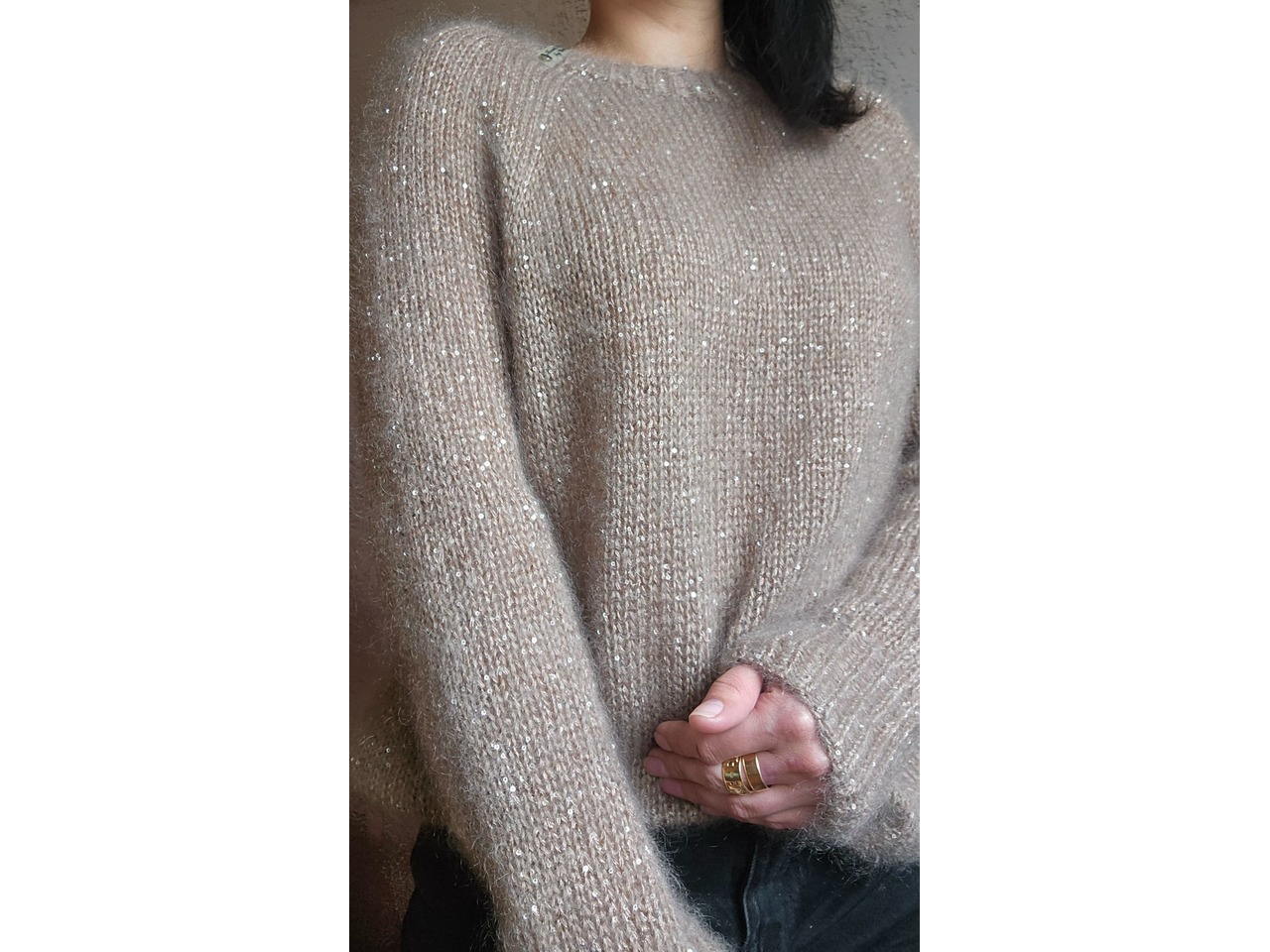 Виготовлений із надлегкої та теплої пряжі — кідмохеру на шовковій основі — цей джемпер поєднує м'якість, повітряність і витончену елегантність. Шовк додає блиску й міцності, а кідмохер — ніжності та пухнастості.
