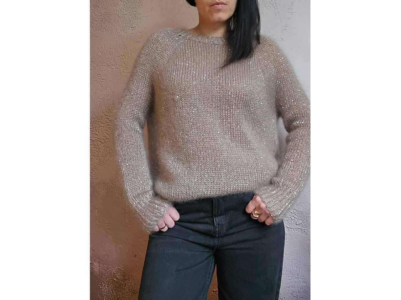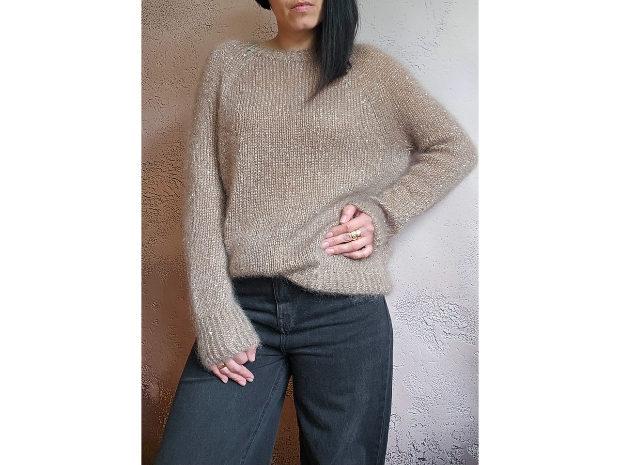 Особливу чарівність моделі надають рясно розсіяні паєтки, які вловлюють світло при кожному русі, створюючи мерехтливий ефект. Джемпер виглядає святково й вишукано, але водночас залишається комфортним для щоденного носіння.
