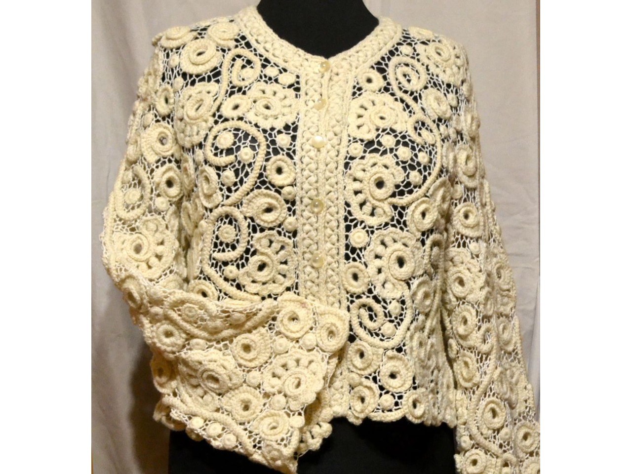 Авторська робота. Жакет зв'зан в техніці Ірландське мереживо з вовни. Цей жакет підходить для офісу, прогулянок містом, зустрічей з друзями та свята. Він поєднує красу і елегантність.