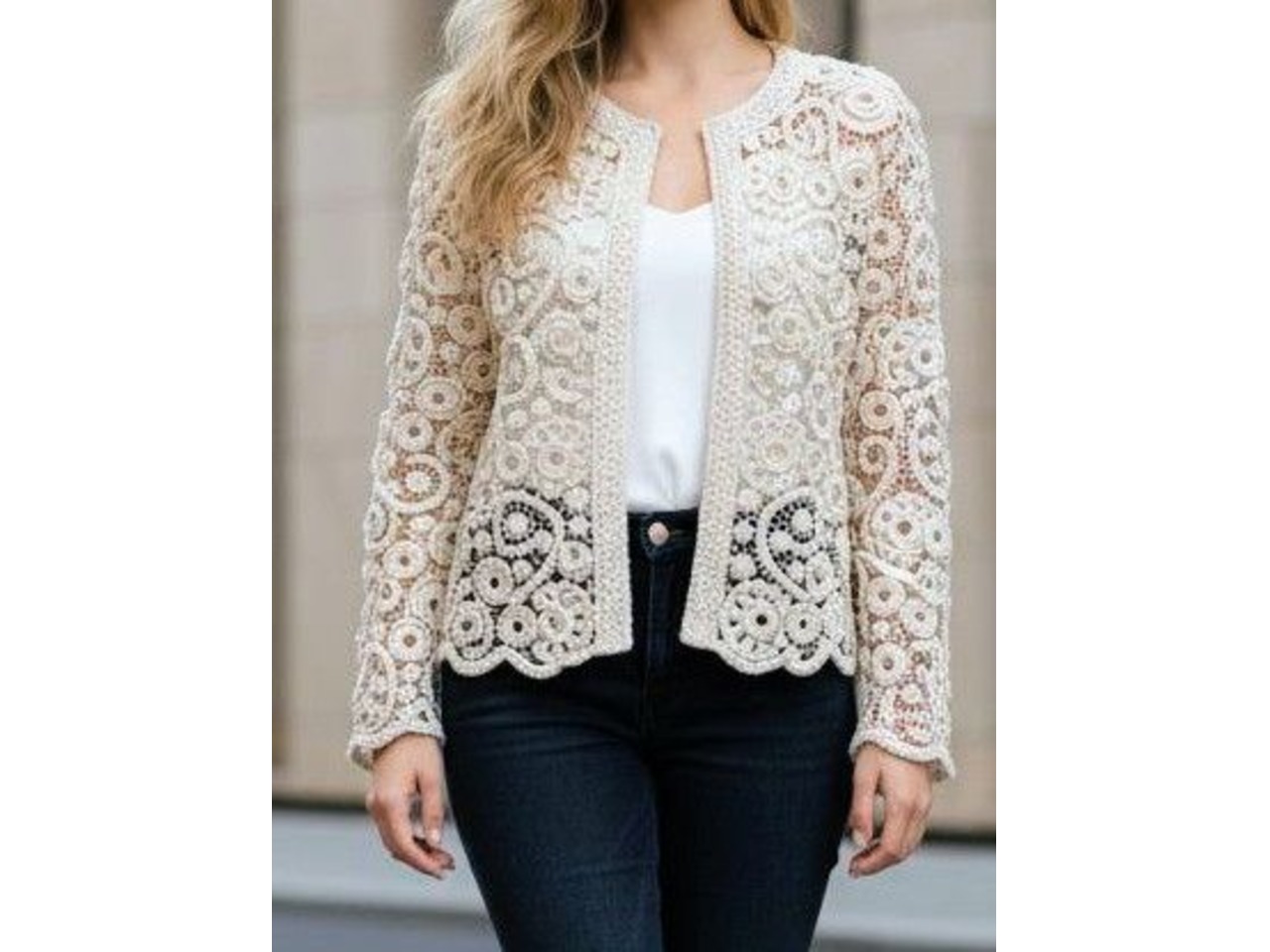 Авторська робота. Жакет зв'зан в техніці Ірландське мереживо. Цей жакет з акцентним візерунком - ідеальний вибір для прохолодних днів,він поєднує комфорт і елегантність, даруючи вам жіночий та сучасний вигляд.
