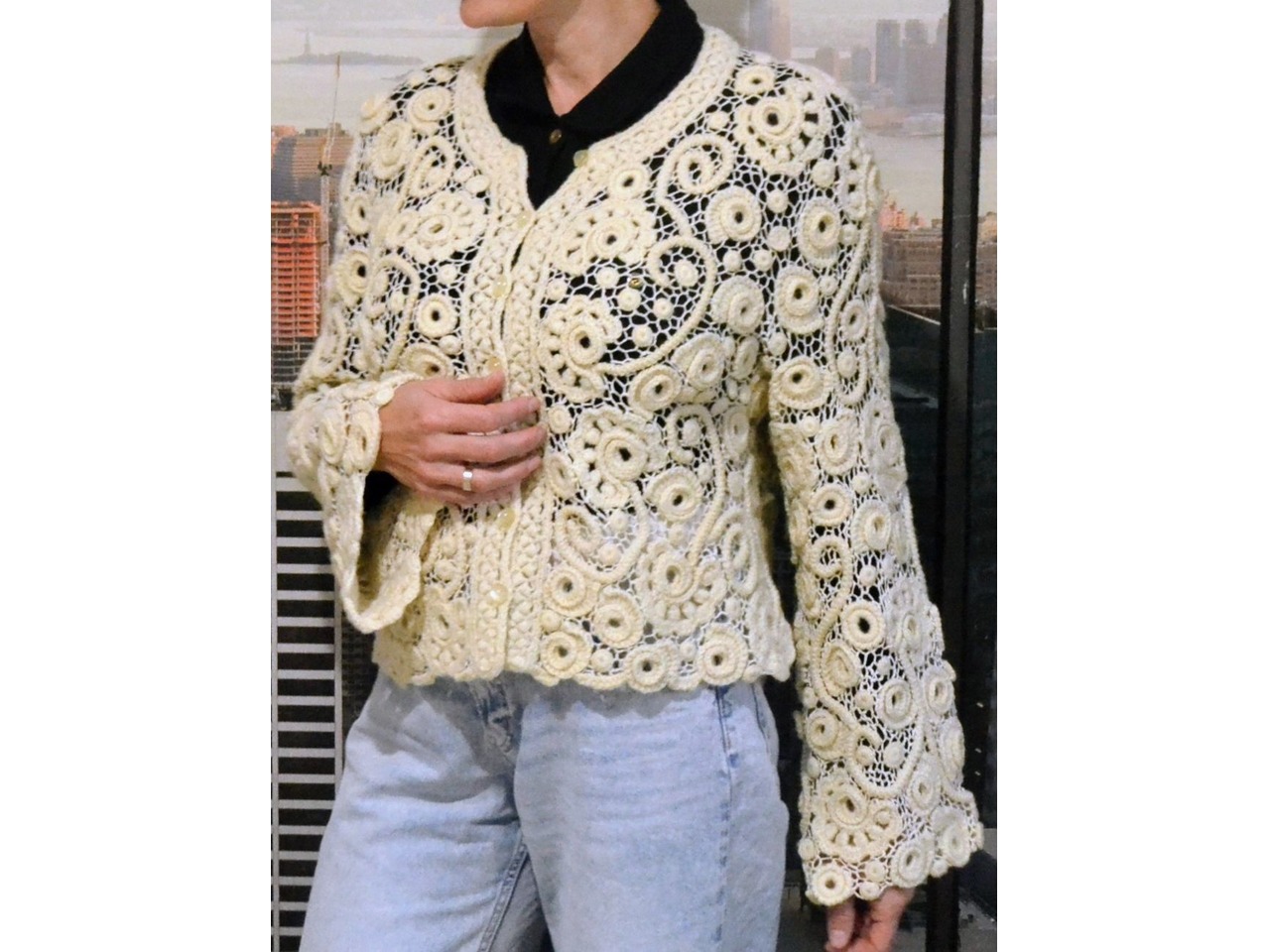 Авторська робота. Жакет зв'зан в техніці Ірландське мереживо з вовни. Цей жакет підходить для офісу, прогулянок містом, зустрічей з друзями та свята. Він поєднує красу і елегантність.