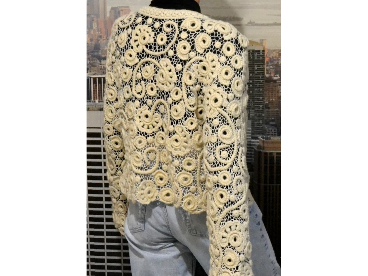 Авторська робота. Жакет зв'зан в техніці Ірландське мереживо. Цей жакет з акцентним візерунком - ідеальний вибір для прохолодних днів,він поєднує комфорт і елегантність, даруючи вам жіночий та сучасний вигляд.