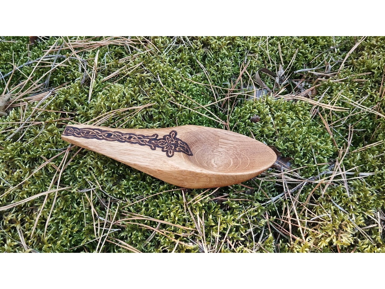 Ложка виготовлена з породи дерева дуб. Оброблена лляною олією. Малюнок нанесений за допомогою пірографа.