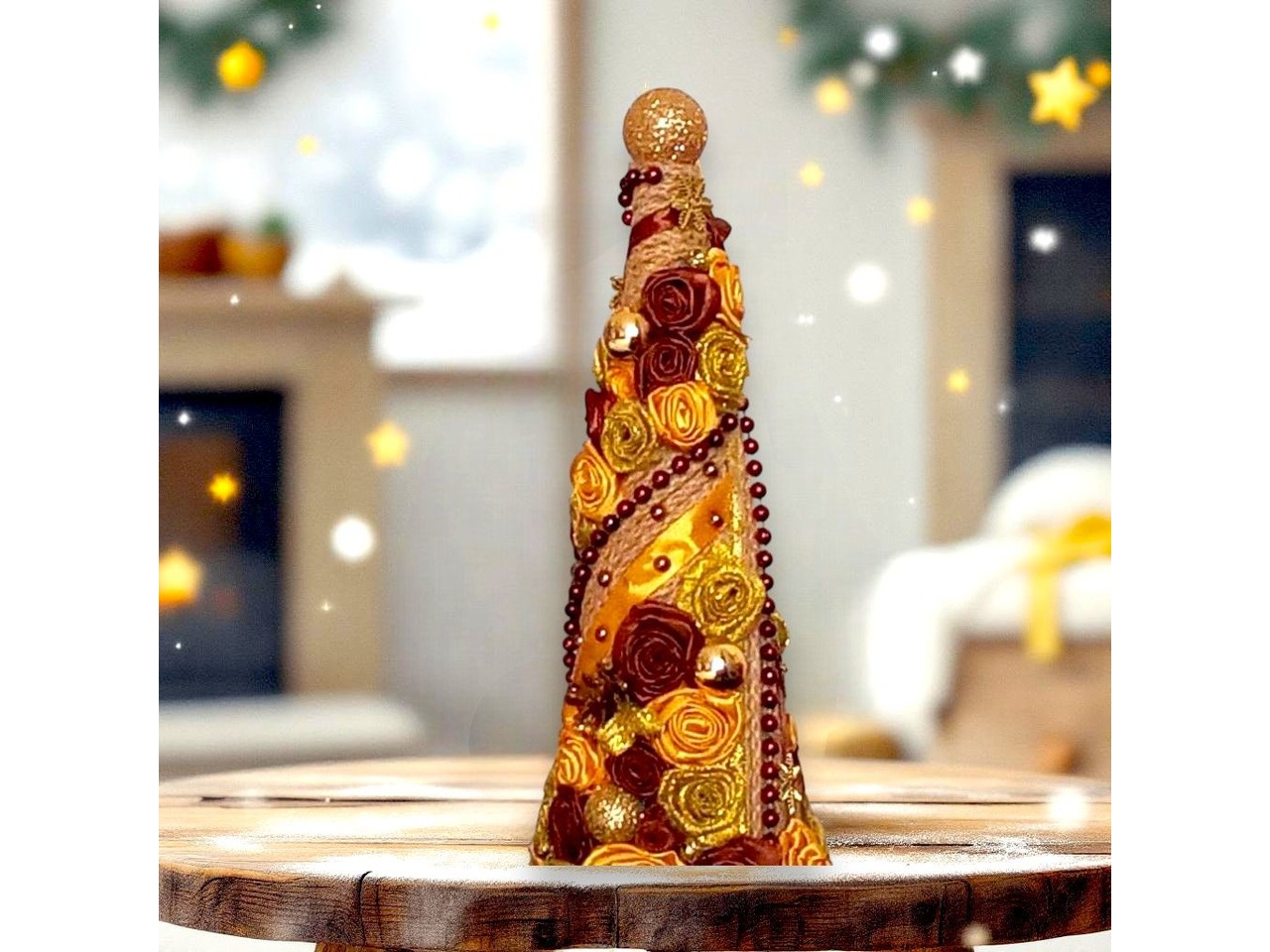 Ніжна декоративна ялинка ручної роботи стане чудовим подарунком або стильним акцентом у вашому інтер’єрі.