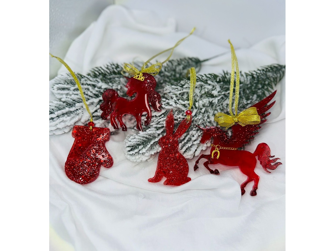 Набір новорічних прикрас на ялинку з епоксидної смоли.