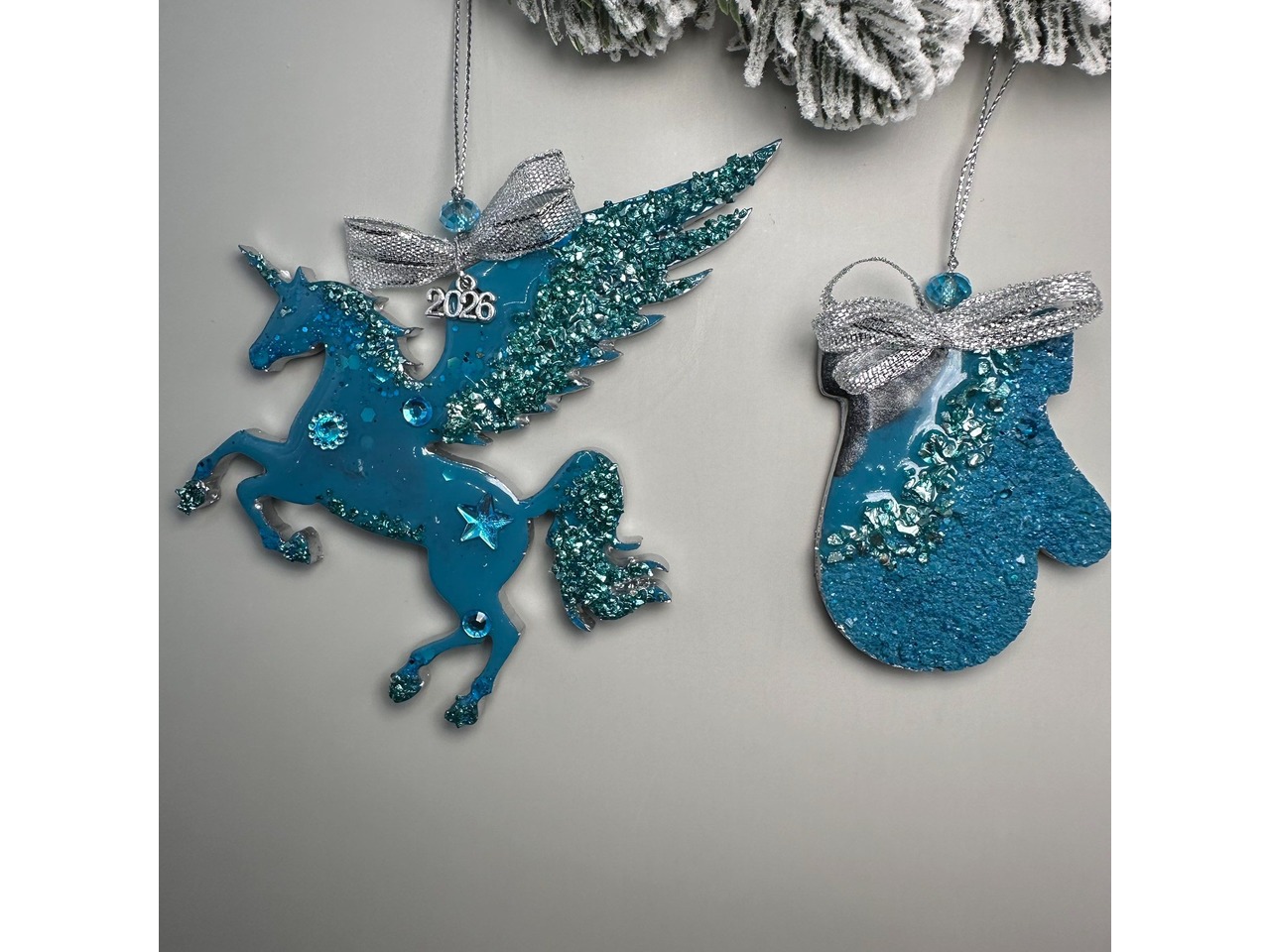 Набір новорічних прикрас на ялинку з епоксидної смоли.