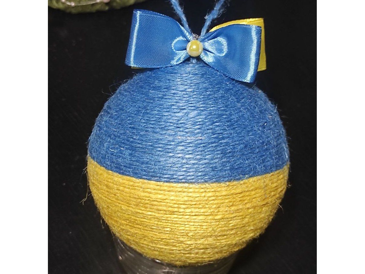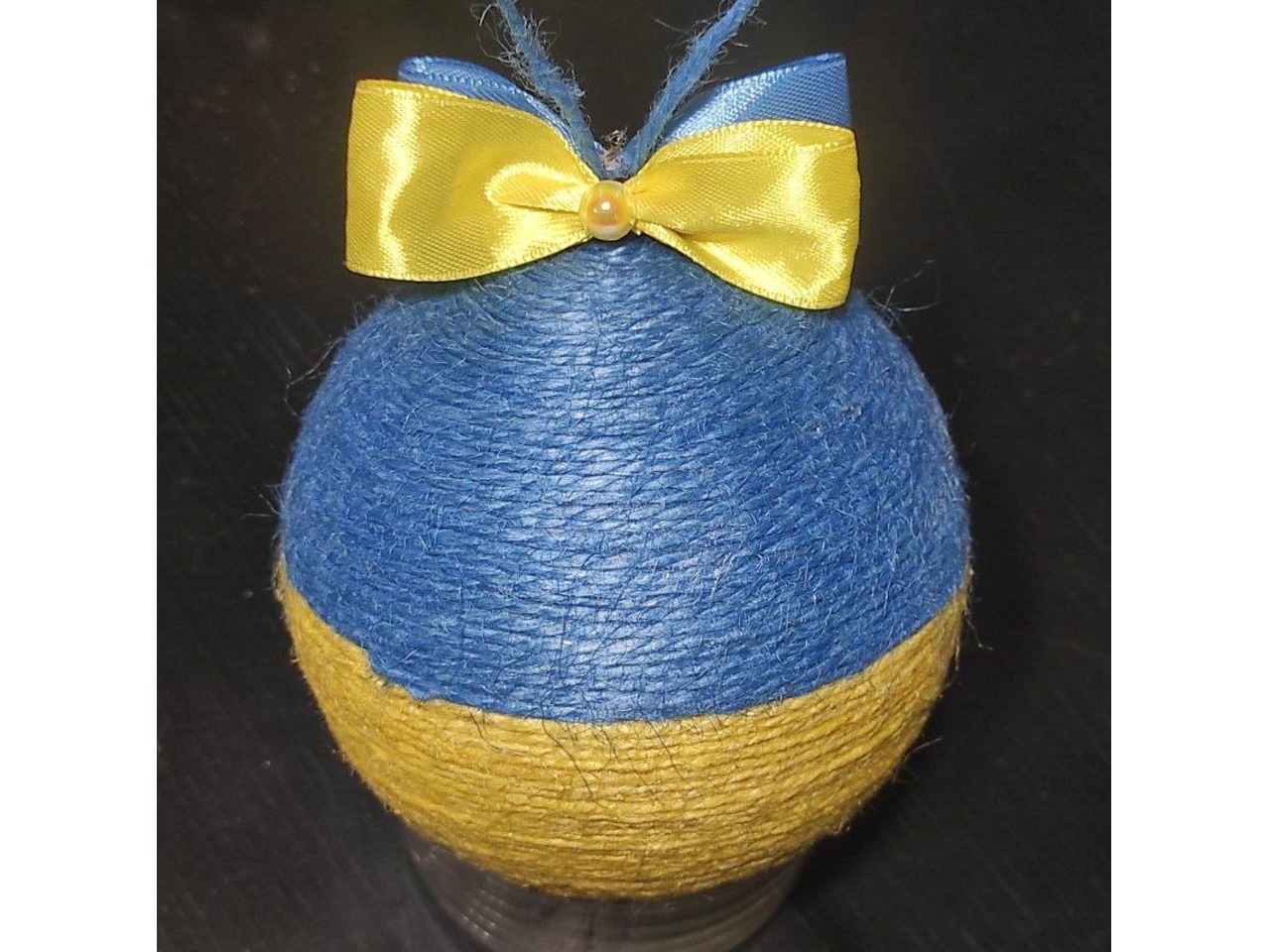 Основа виробу — легкий та міцний пінопластовий шар, оздоблений кольоровим джутовим шпагатом, атласною стрічкою та декоративними бусінами.Діаметр кулі 8 см.