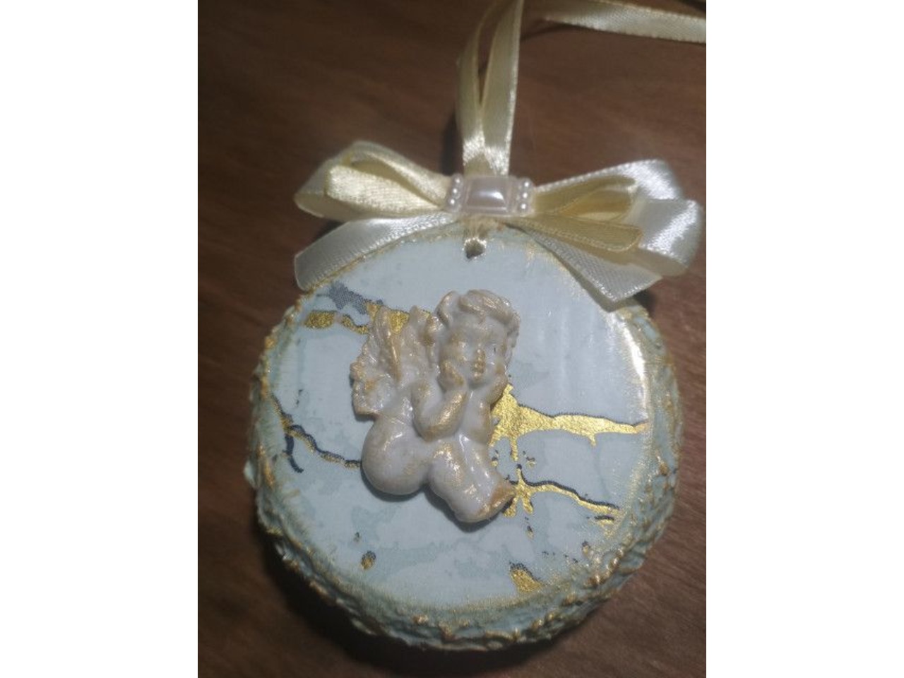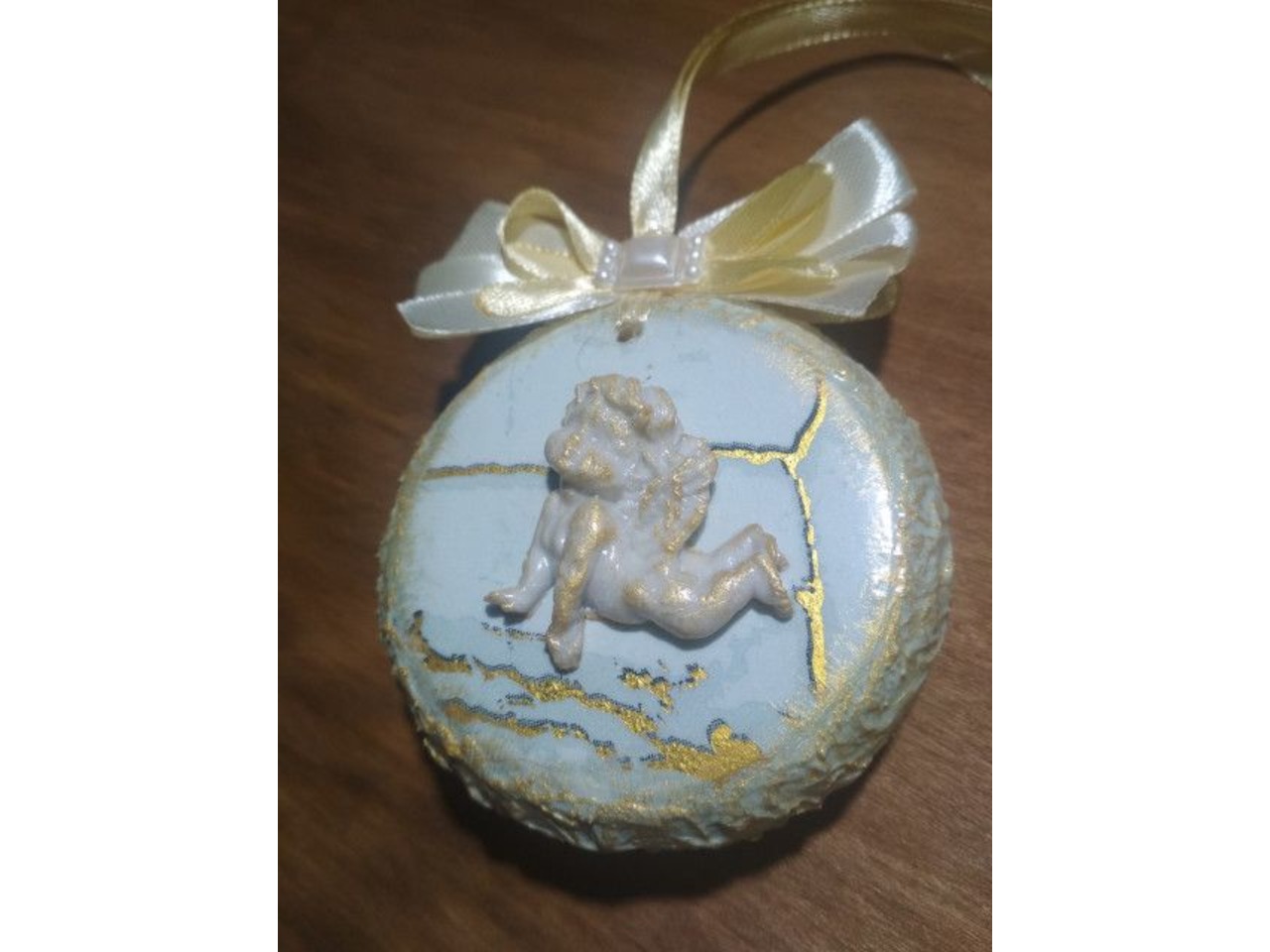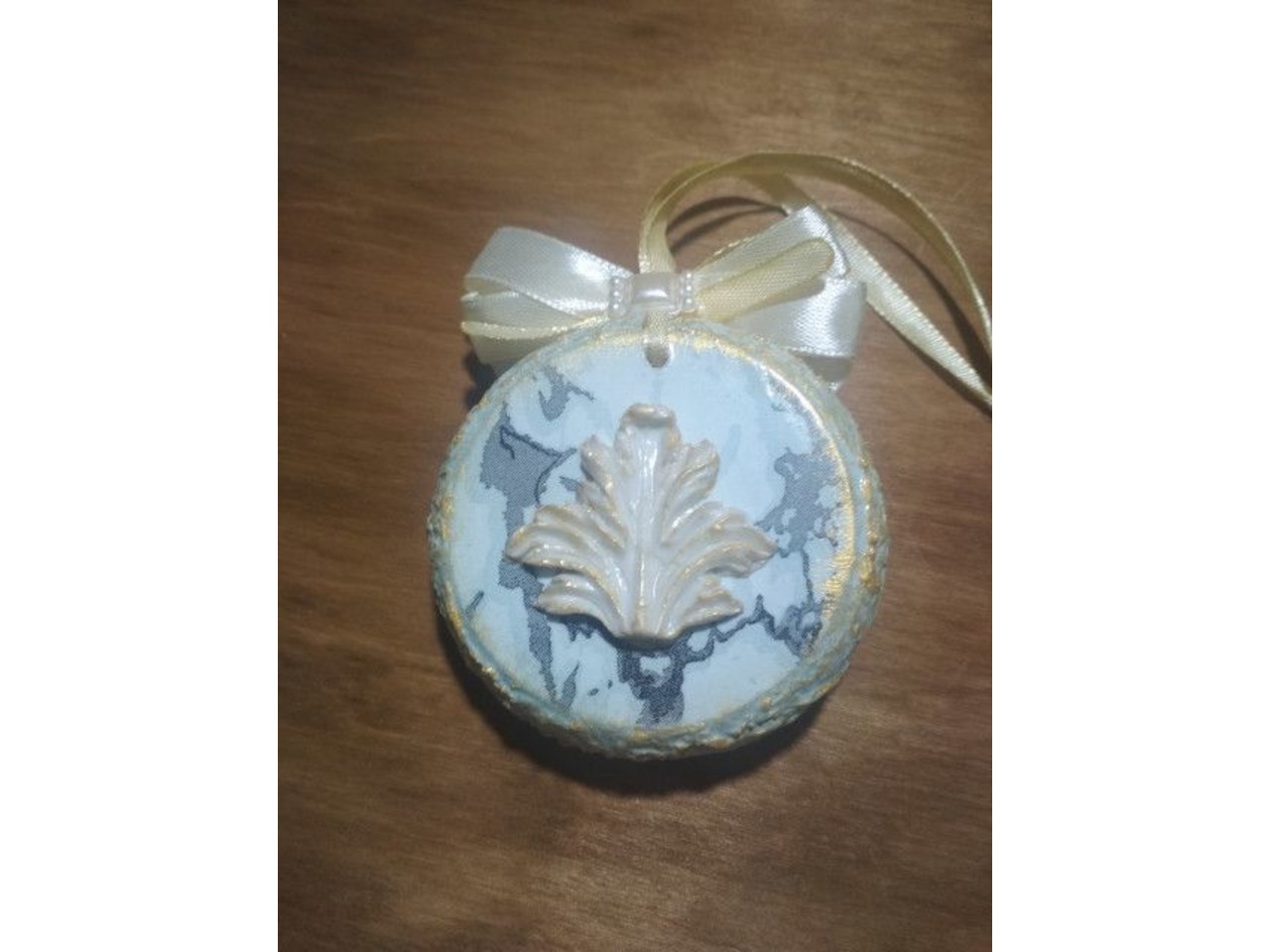 Украшение на елку, декупаж, накладные элементы с двух сторон, диаметр 7 см. В наличии 2 шт. В работе использованы акриловые лакокрасочные материалы на водной основе. Цена указана за 1 шт, без стоимости доставки.