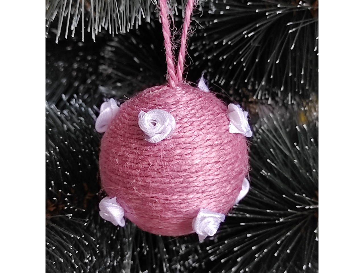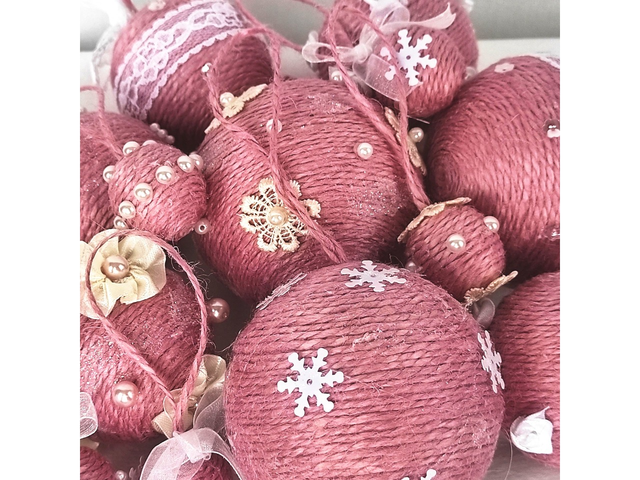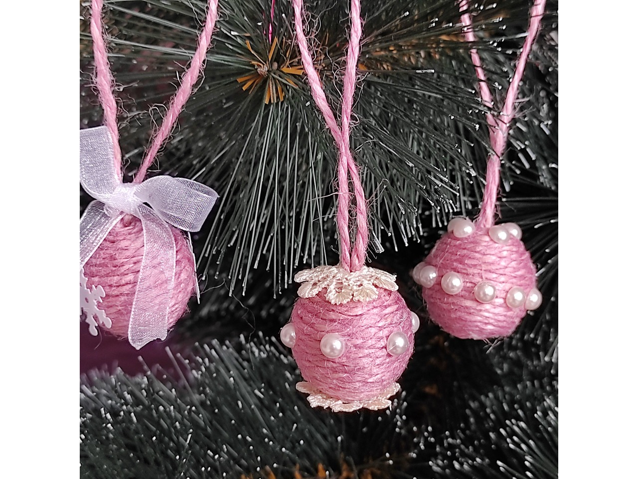 Набір новорічних куль із джутового рожевого шпагатуОригінальні декоративні кулі стануть стильним акцентом на вашій ялинці та додадуть святковому інтер’єру затишку.