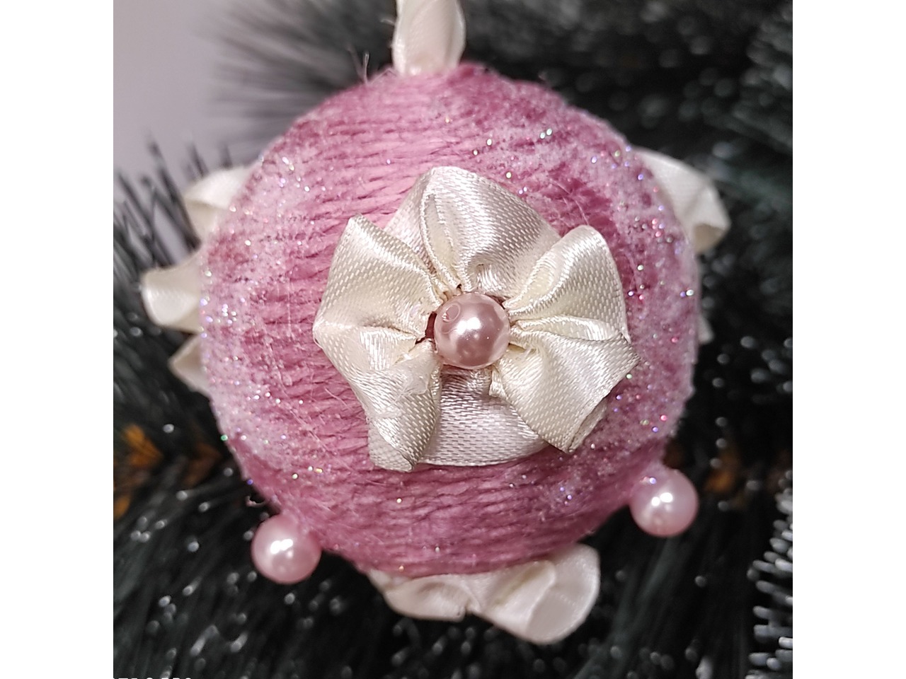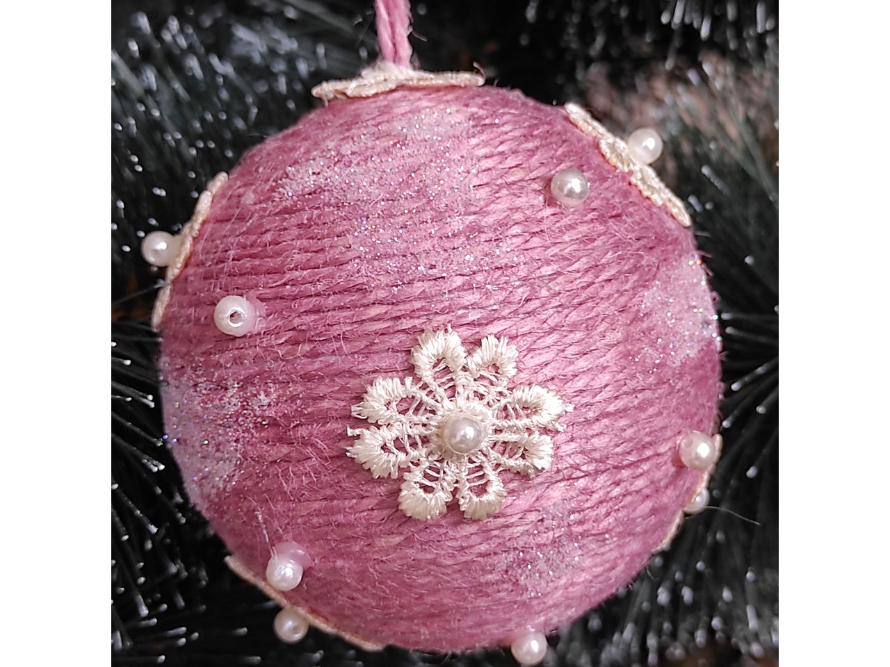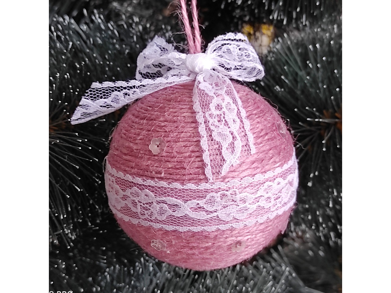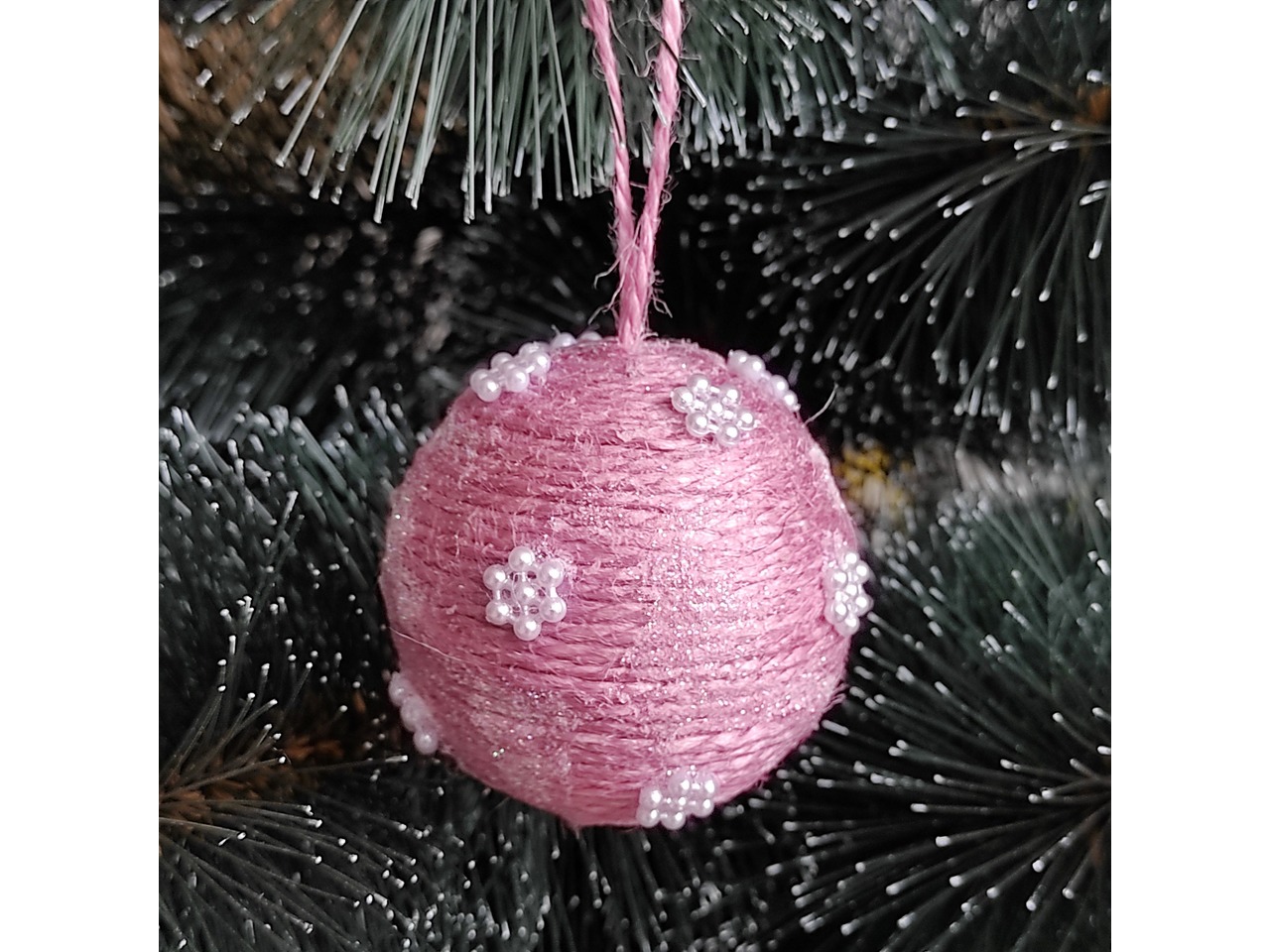 Набір новорічних куль із джутового рожевого шпагатуОригінальні декоративні кулі стануть стильним акцентом на вашій ялинці та додадуть святковому інтер’єру затишку.