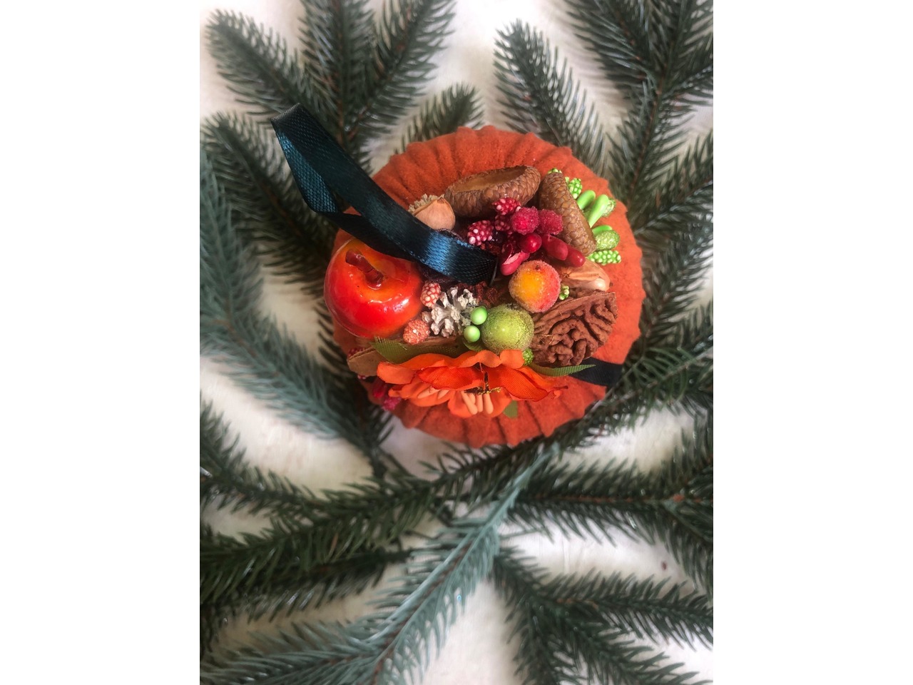 • Матеріали: Основа кульки обтягнута якісною текстильною тканиною теракотовогогарбузового відтінку.