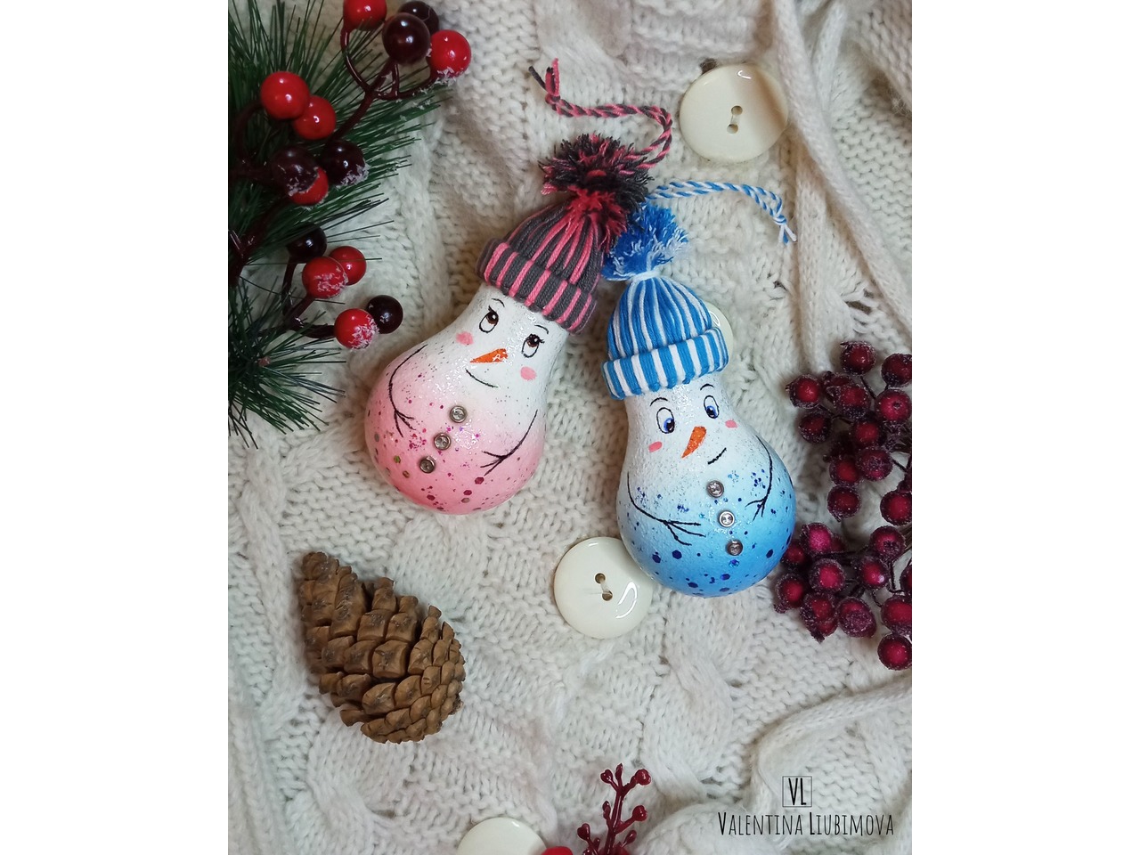 Закохані сніговички (пара)Неймовірно милі закохані сніговички — 100 % авторські ялинкові іграшки ручної роботи з перегорілих лампочок накалювання.
