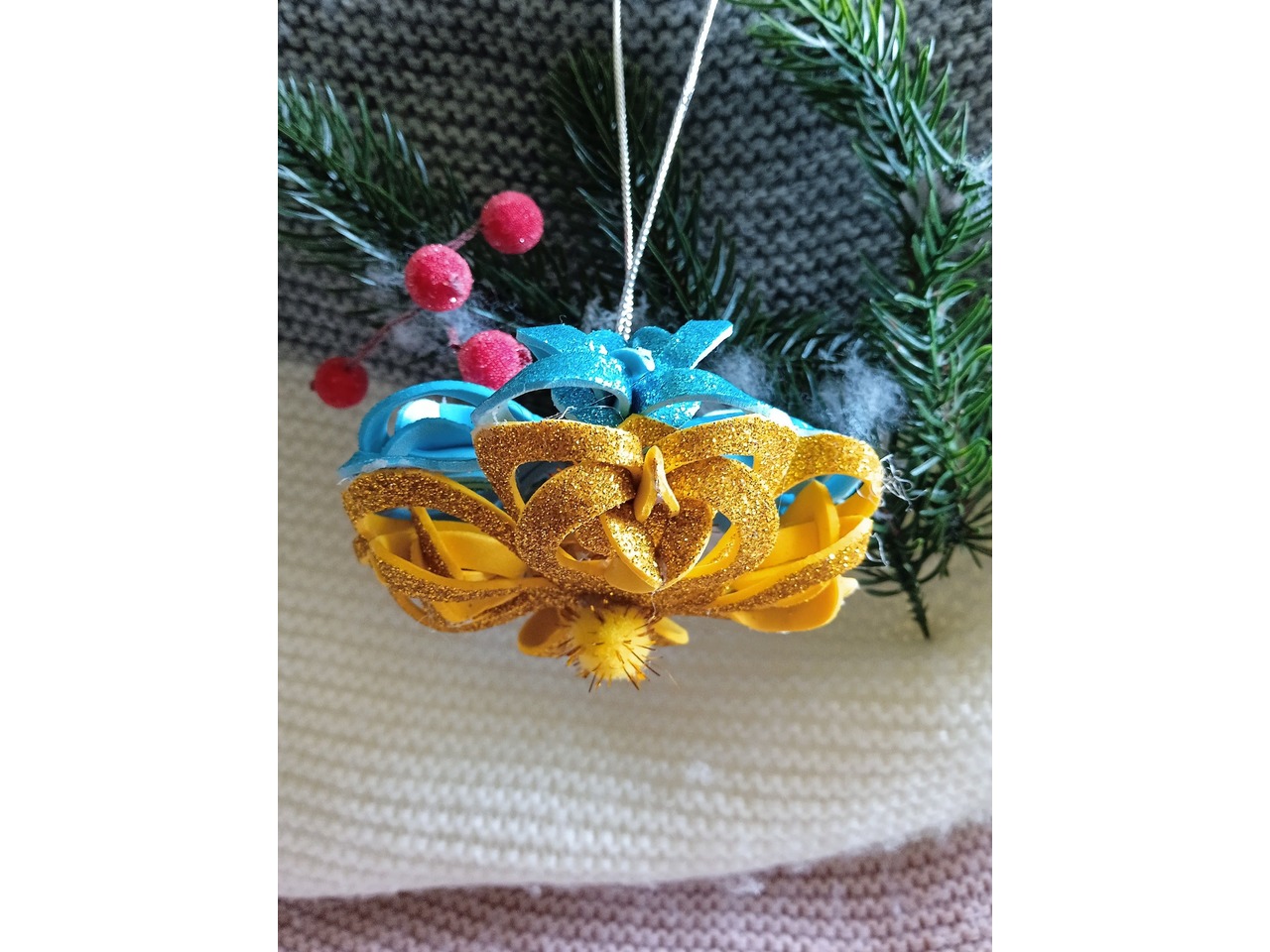 Handmade У роботі використані матеріали: епоксидна смола, перламутровий пігмент, глітер, сяючі блискітки, намистинка, стрічка (атласна, парча). Розмір: ширина 6 см, висота 8 см. Епоксидна смола має високу міцкість і довговічність. Іграшка відмінно підійде, як новорічна прикраса для ялинки і просто, ...