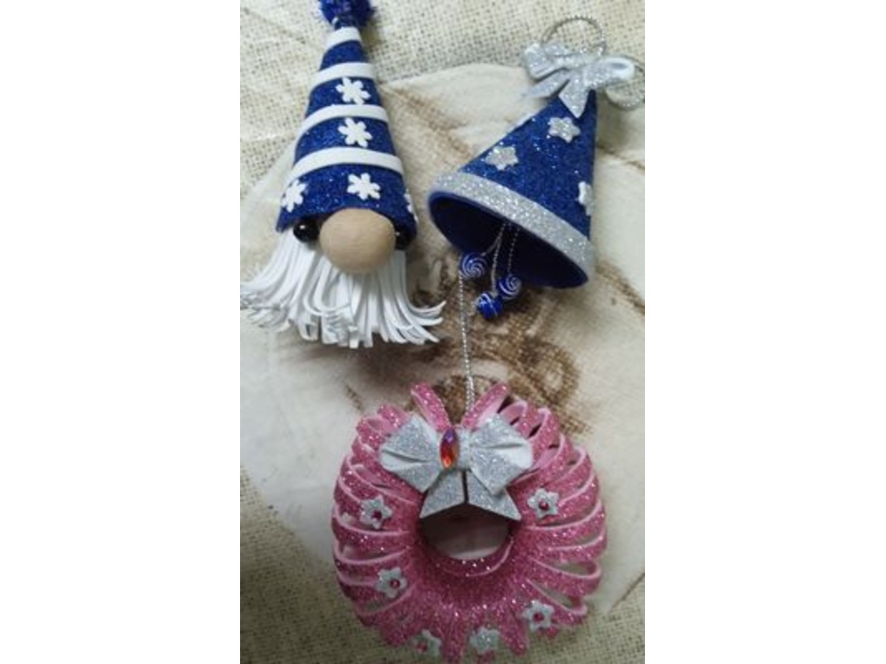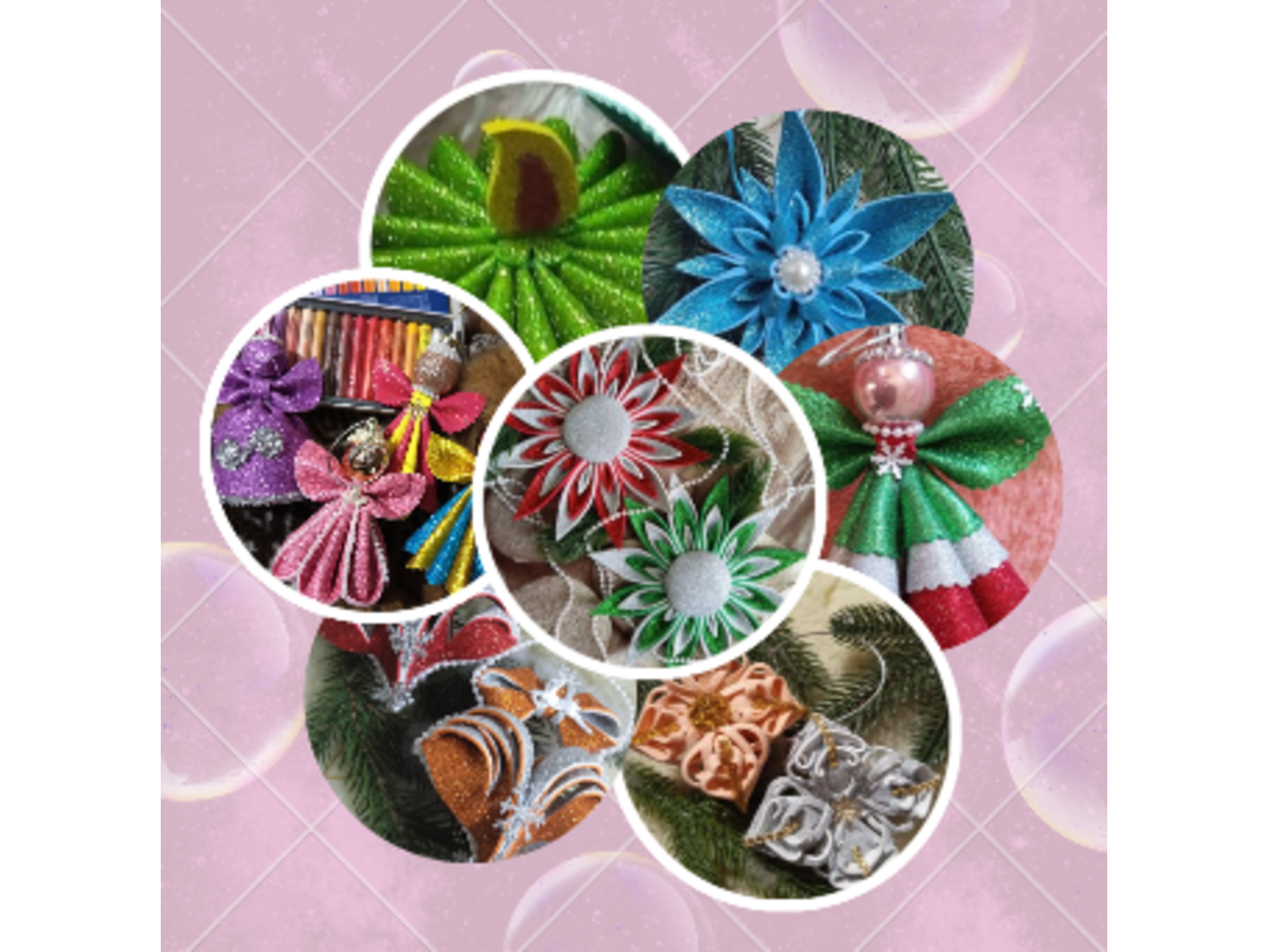 Іграшки для новорічної ялинки, виготовлені з матеріалу фоаміран.Прикраси мають яскраві кольори, не б'ються.