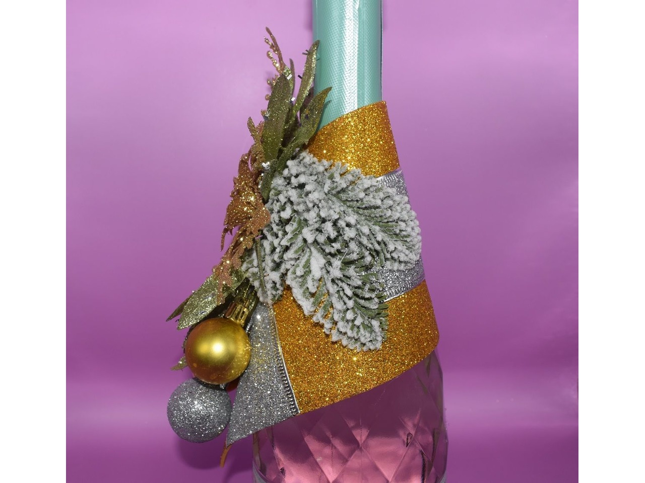 Новорічна прикраса для шампанського. Святковий декор.