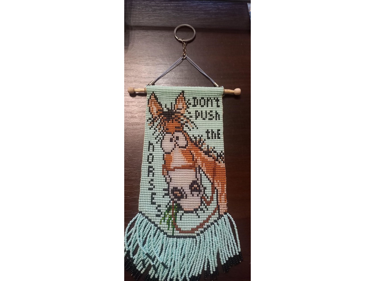 Підвіска в авто з бісеру. Символ Нового року з легендарною фразою.