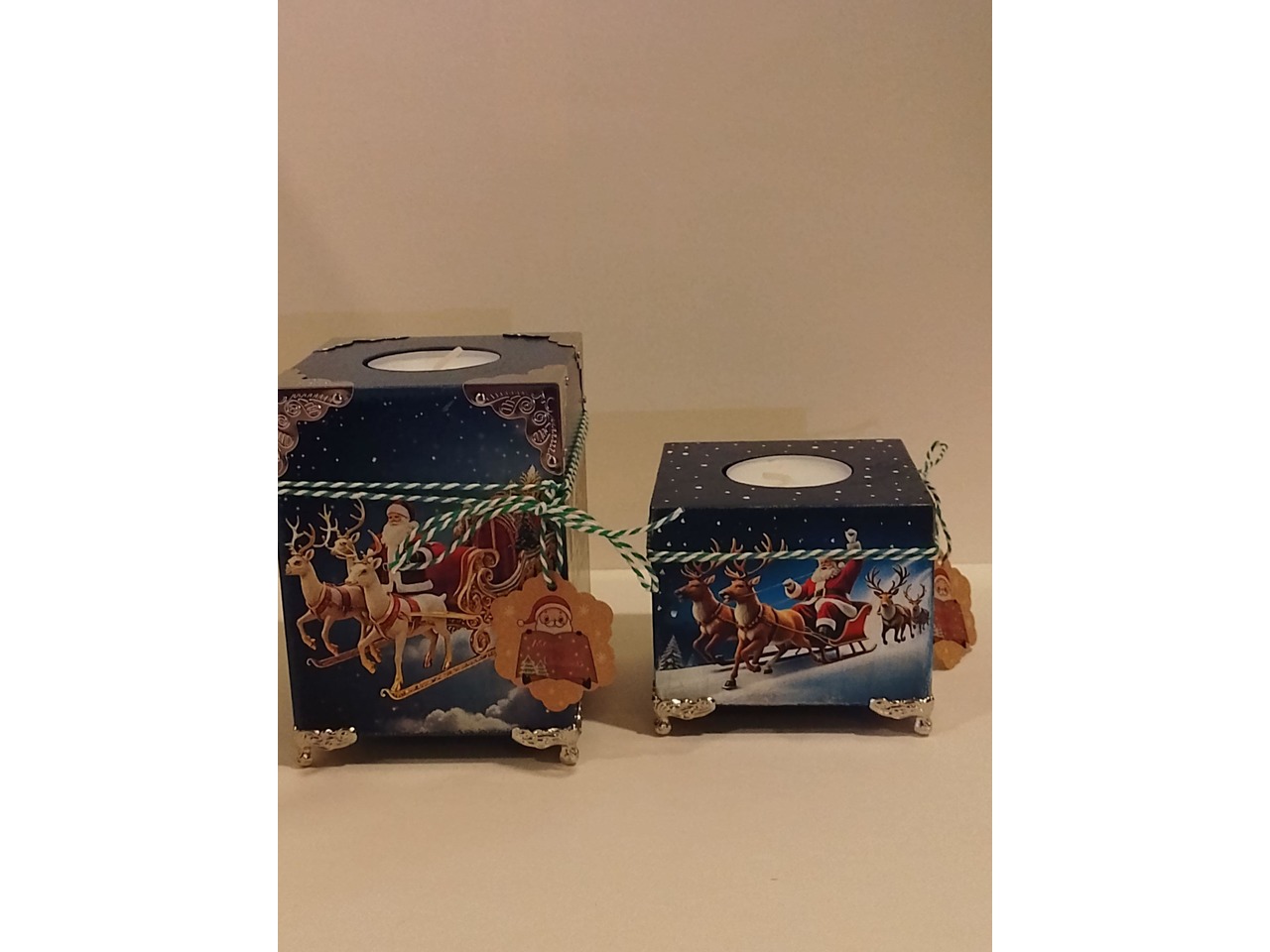 Пара симпатичных подсвечников под чайную или led свечу.Красиво смотрятся и в паре и по одному. И уж точно не испортят новогоднего настроения