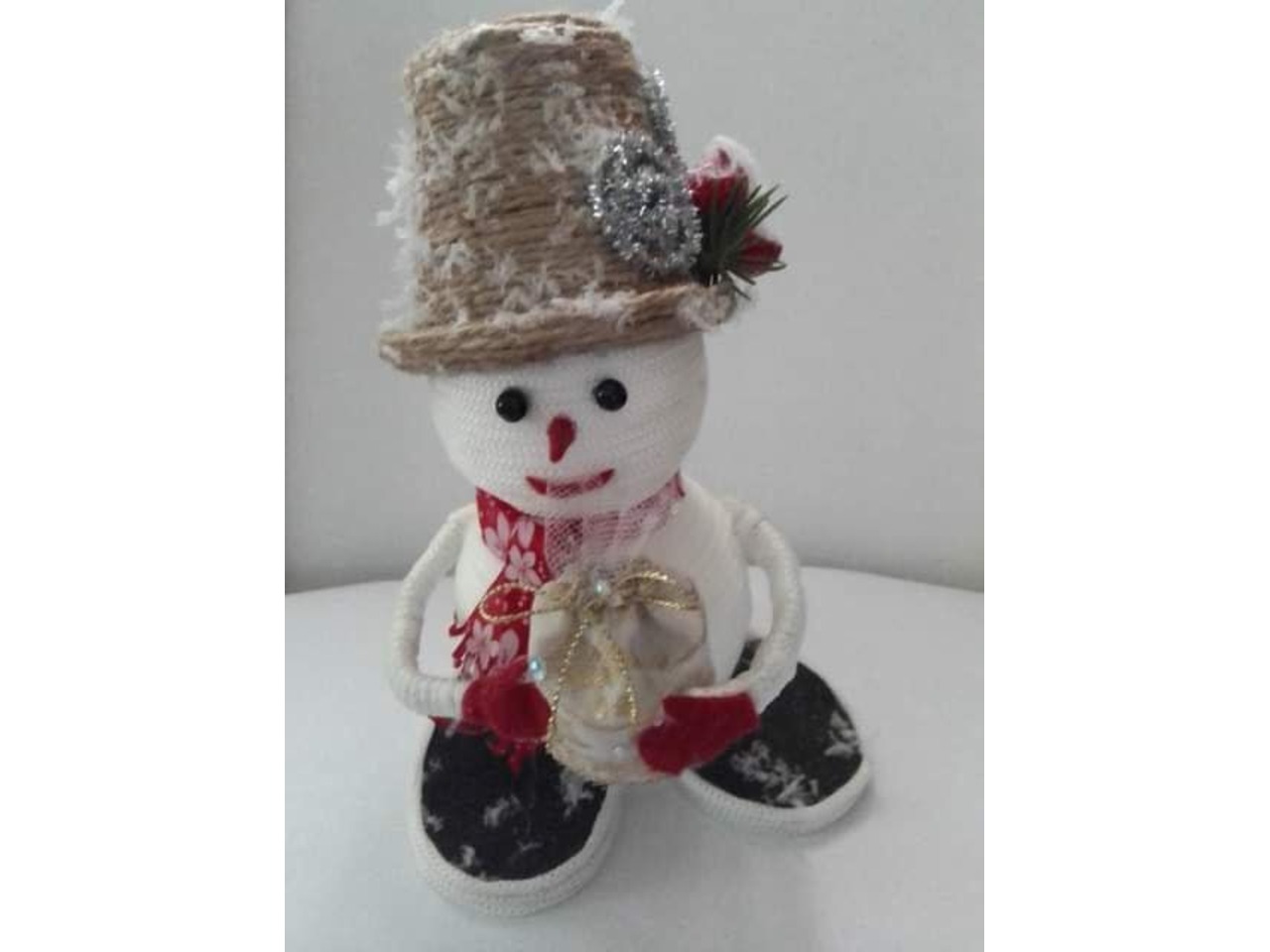 Игрушка Снеговик вязаный. Ручная работа, очень хорошо и плотно связан, шапочка и шарф снимаются, мягкий и приятный на ощупь. Размер: Высота - 27 см. Ширина - 13 см. Состав: Нитки фирмы "Alize" (для детских игрушек) 100% Микрополиэстер, наполнитель: холлофайбер.