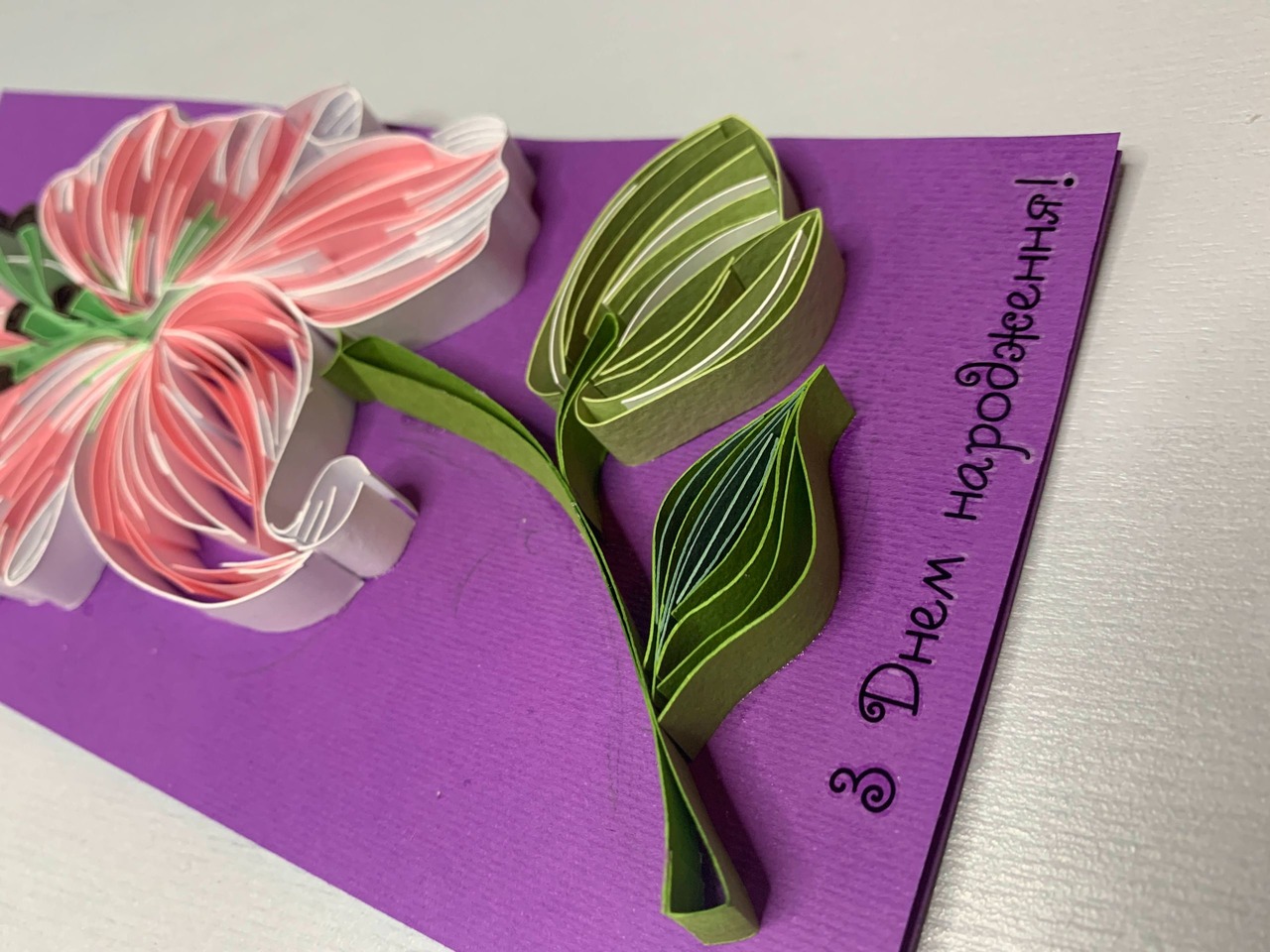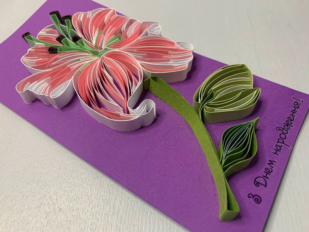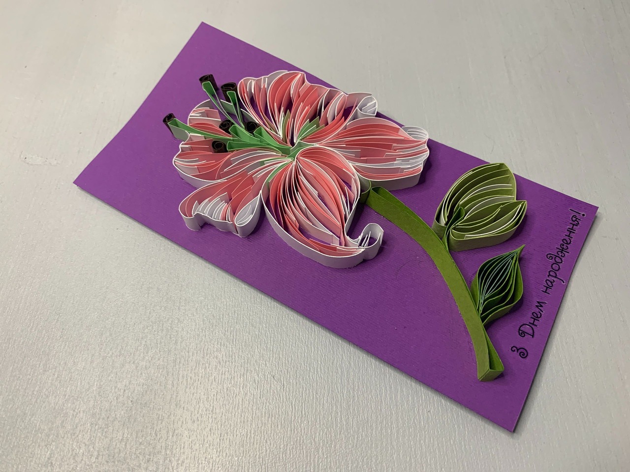 Квілінг листівка “З Днем народження” з об’ємною лілією ручної роботи