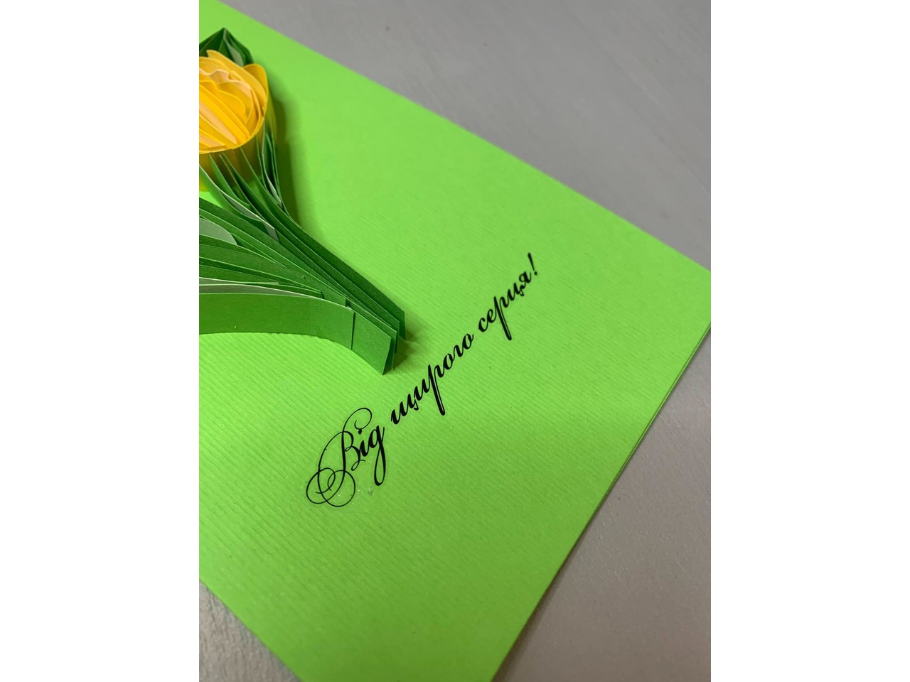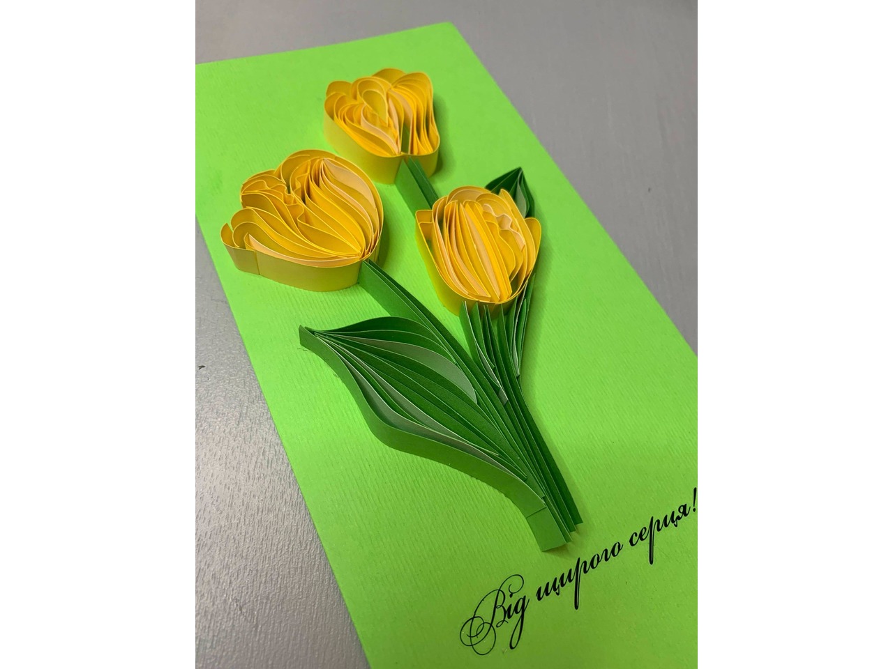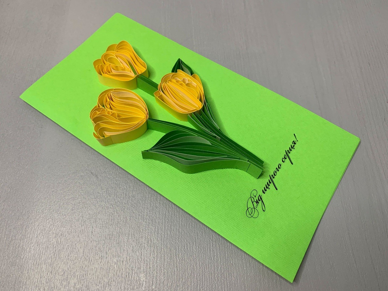 Квілінг листівка “Від щирого серця” з жовтими тюльпанами ручної роботи