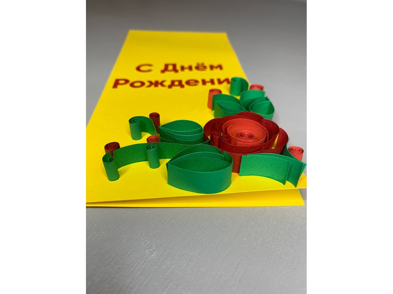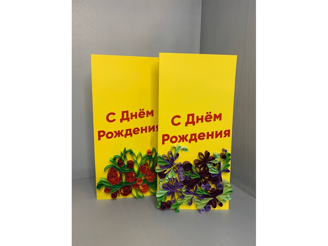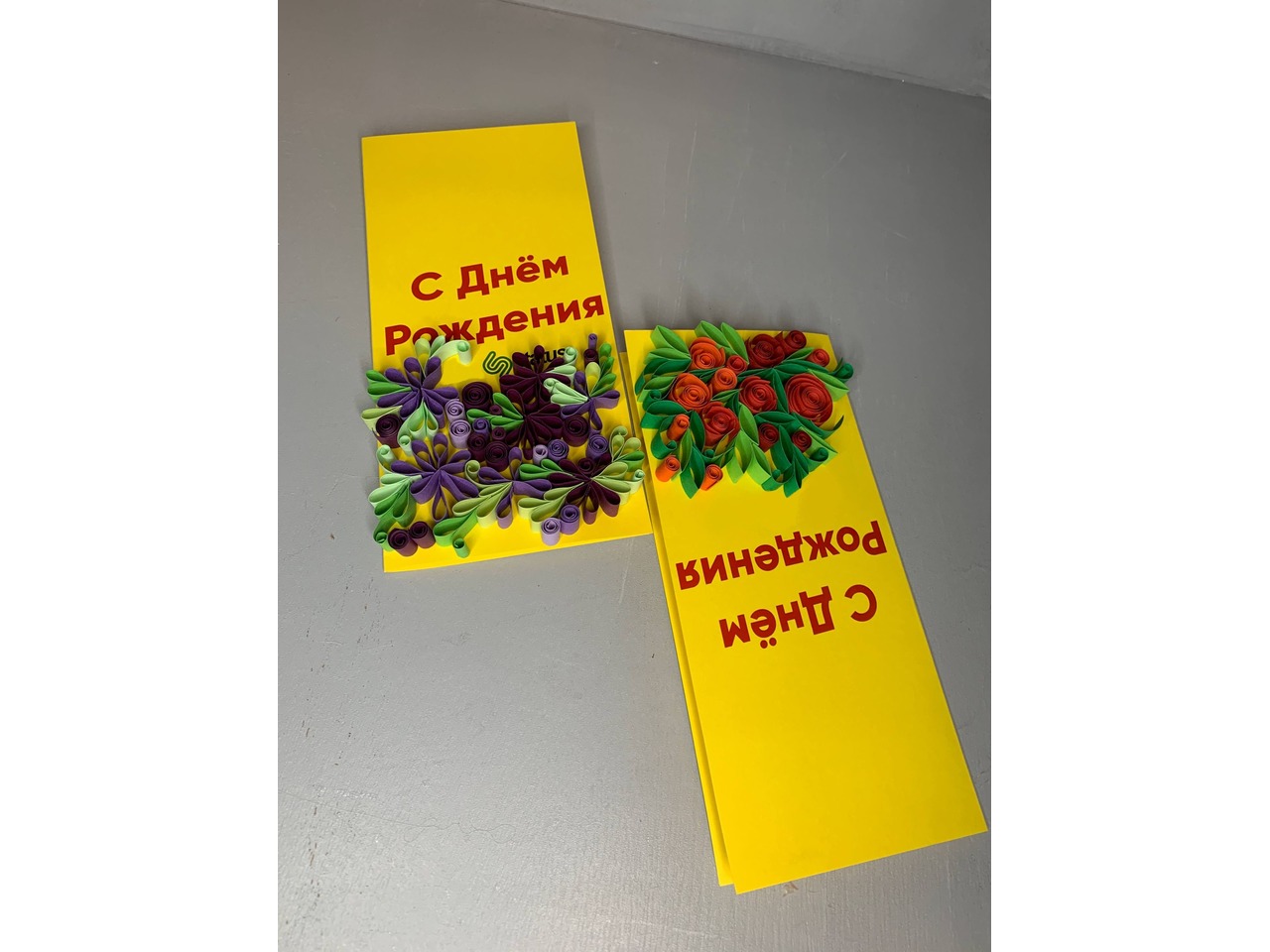 Яскрава листівка ручної роботи в техніці квілінг з об’ємною квітковою композицією.Стильний дизайн та насичені кольори підходять для корпоративних привітань та ділових подарунків.Можливе виготовлення партіями.Ідеальне доповнення до подарунка.