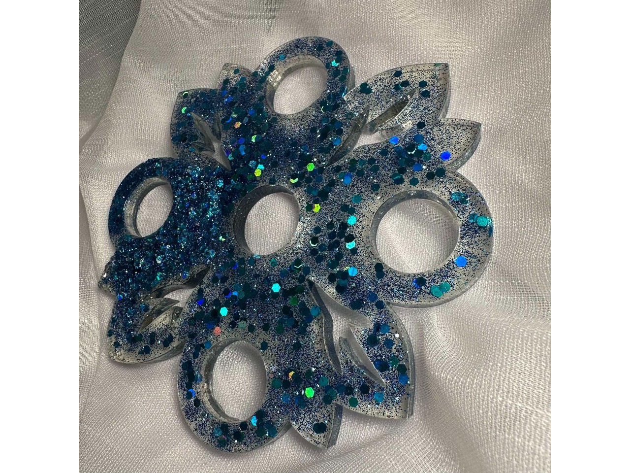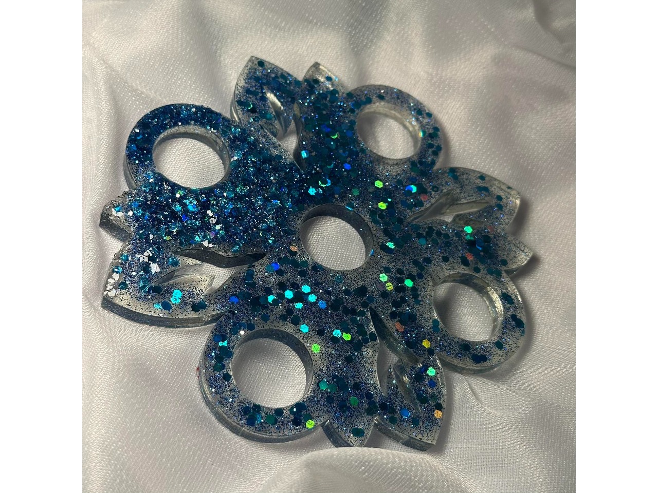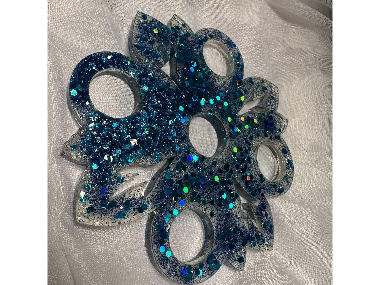 У роботі використані матеріали: епоксидна смола, глітер. Розмір: діаметр 15 см. Епоксидна смола має високу міцкість і довговічність.