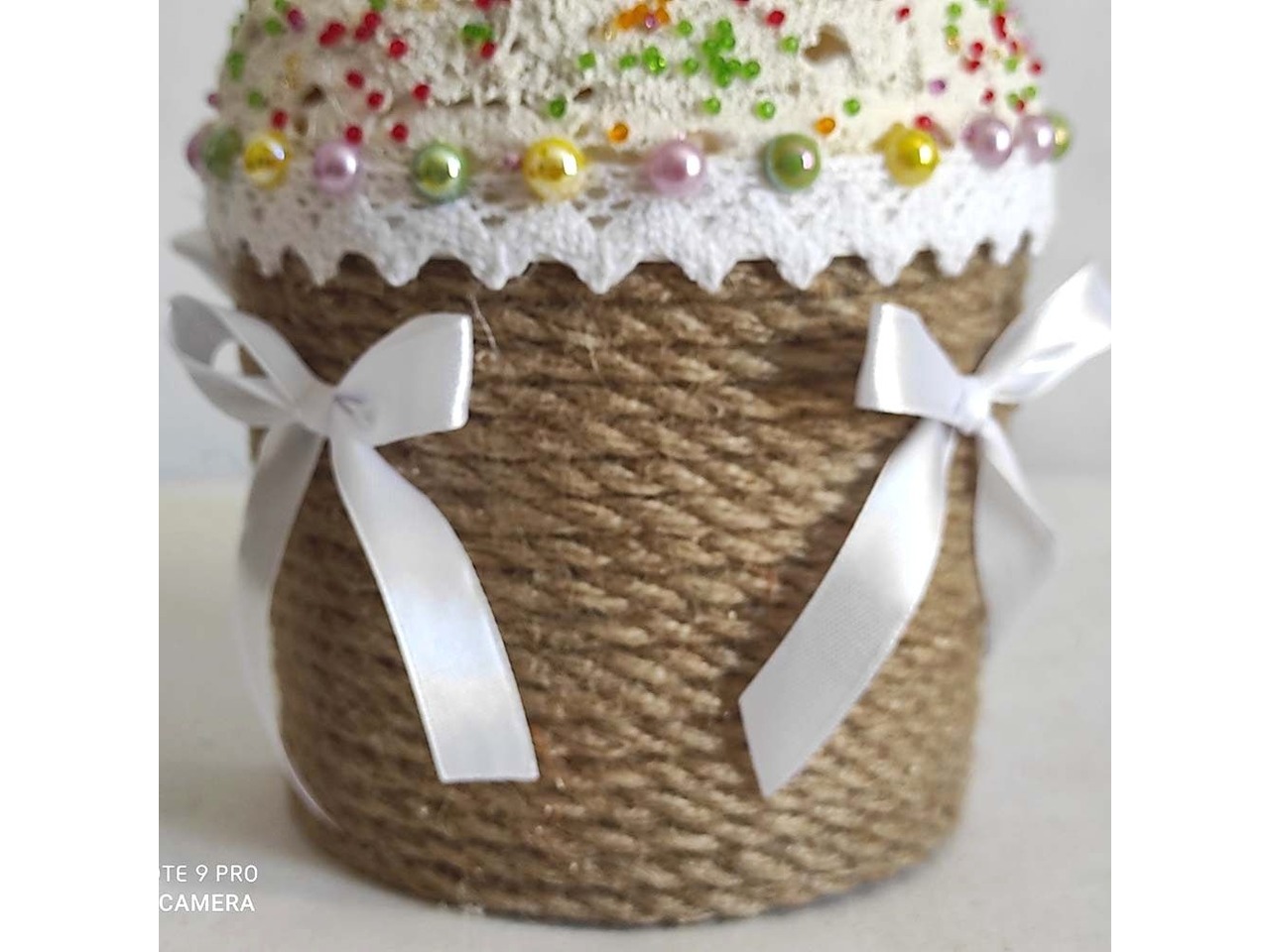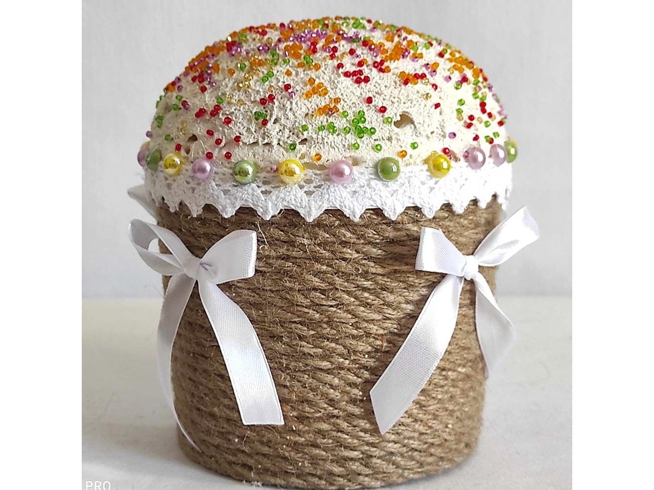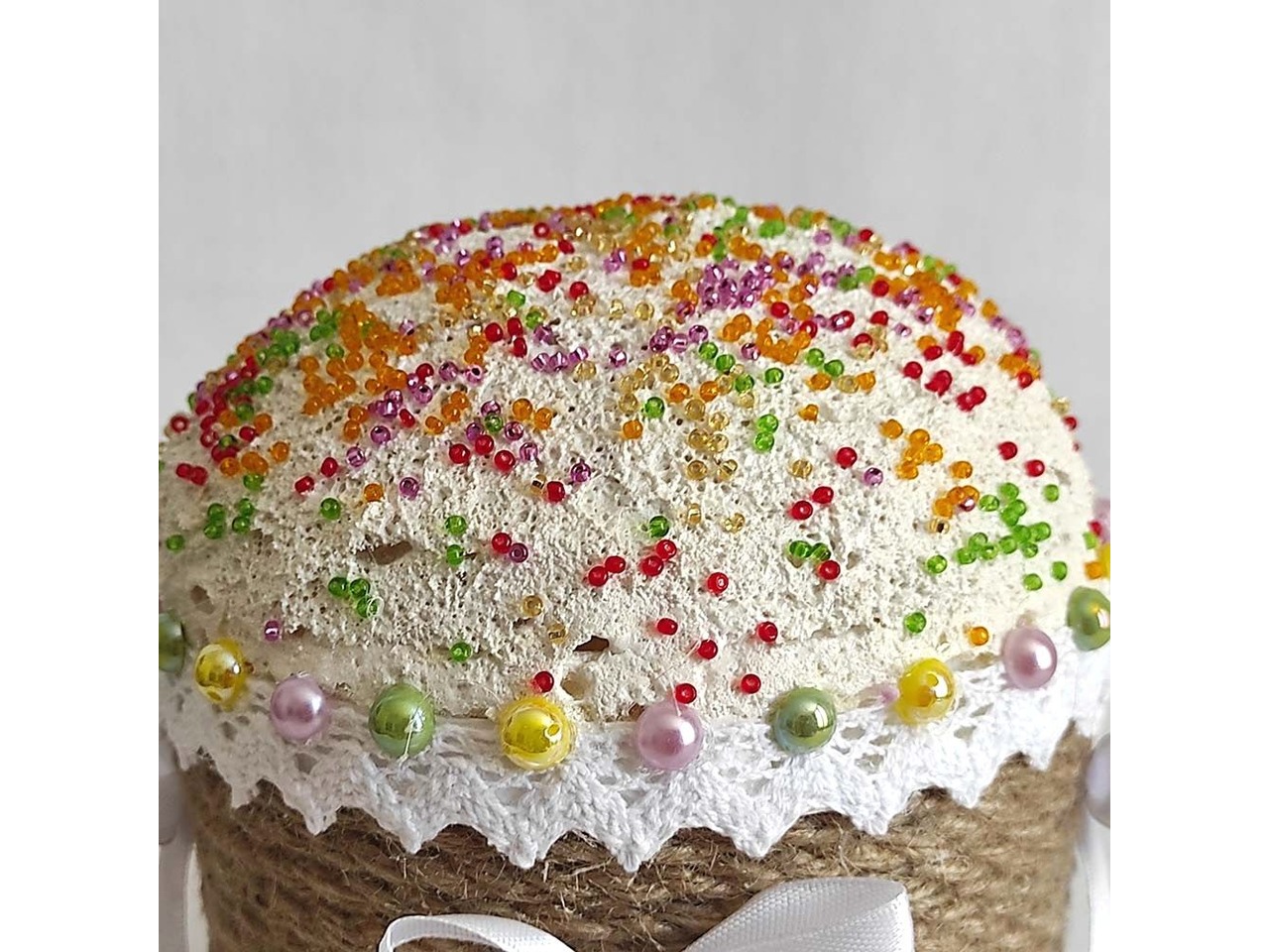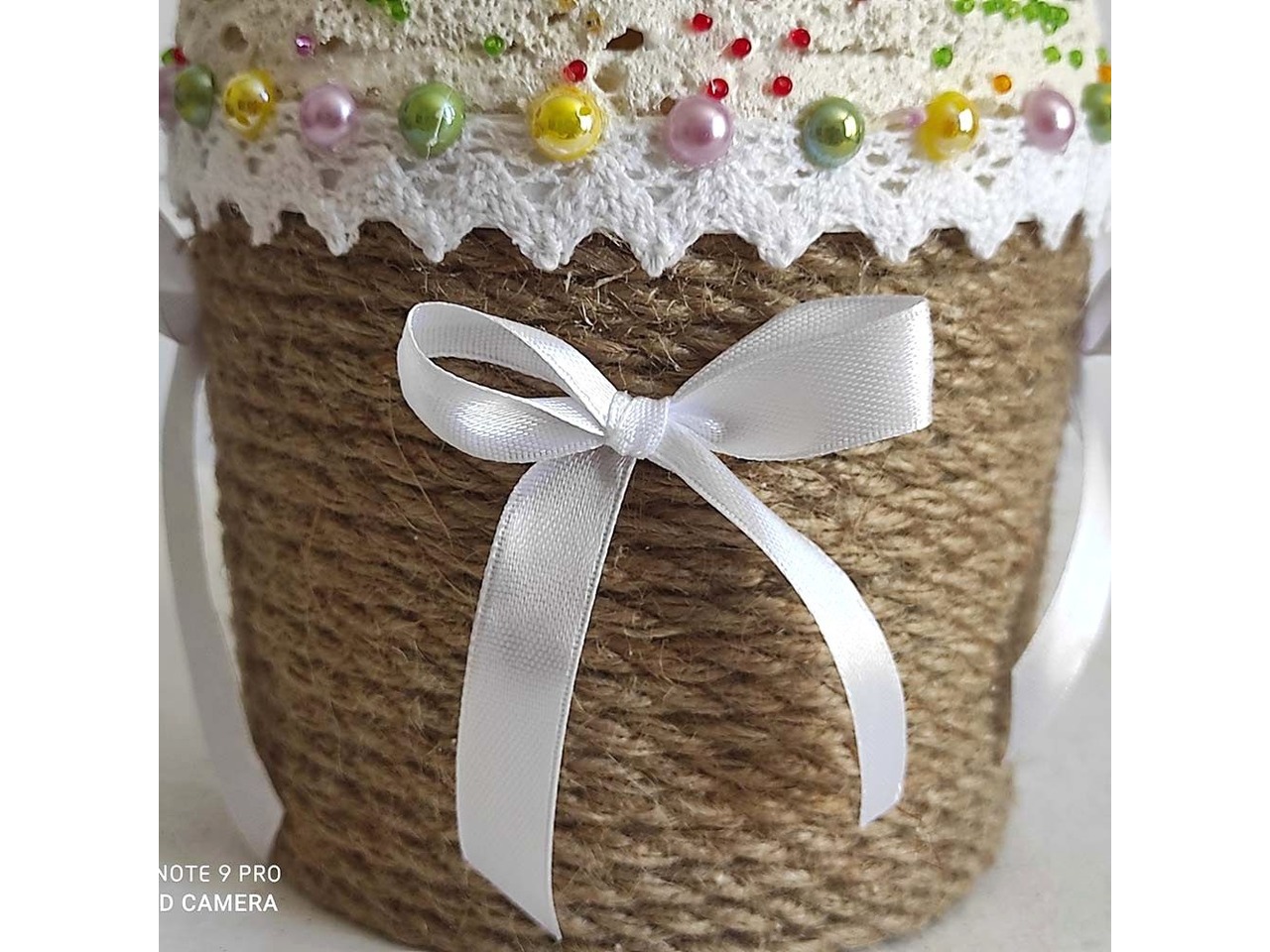 • Оздоблення: джутовий канат, бавовняне мереживо, намистини, бісер та атласна стрічка