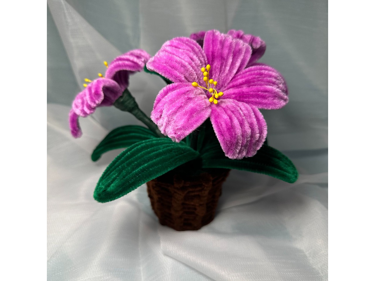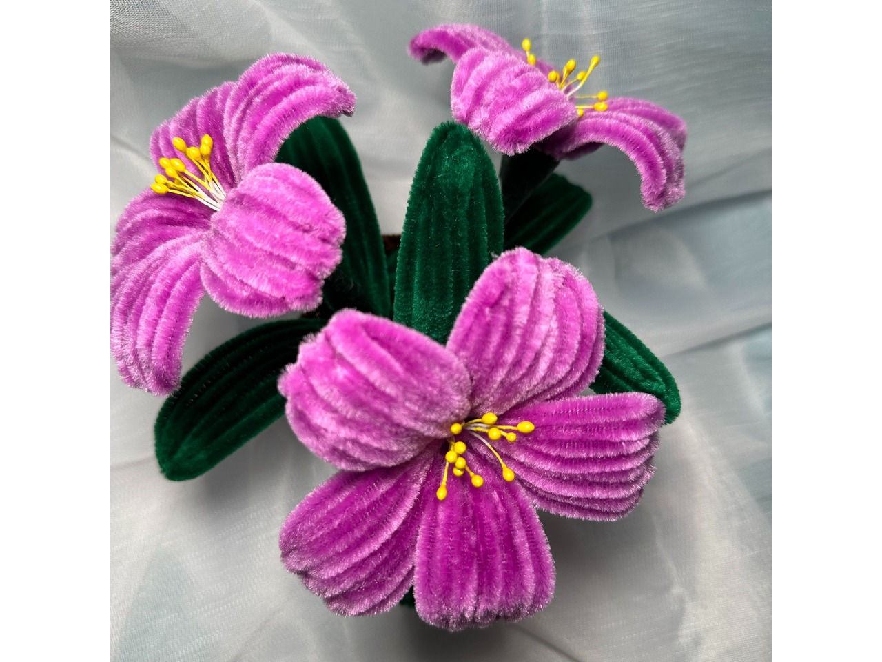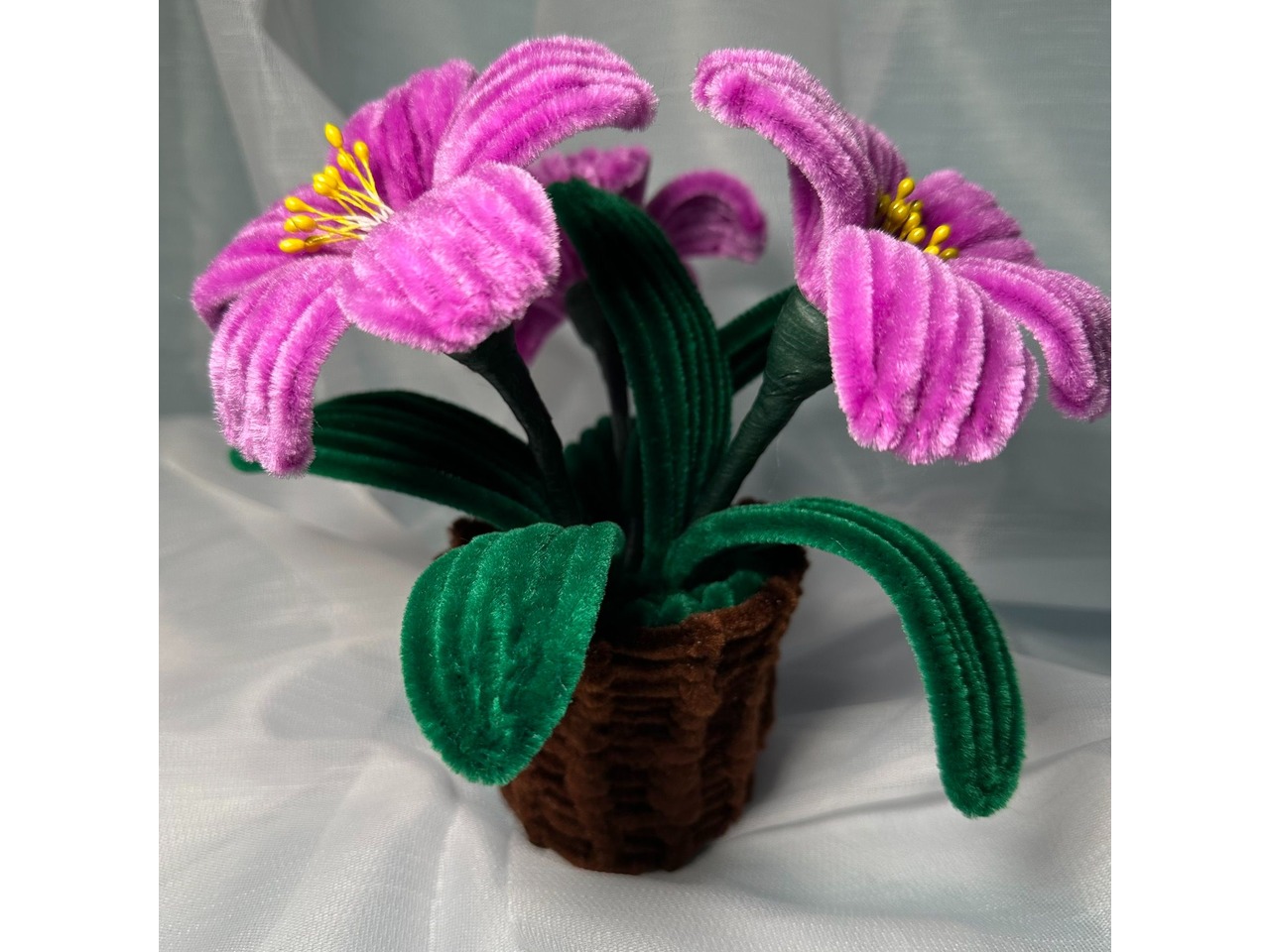 Чарівний букет для тих, хто любить весняні квіти та оригінальні подарунки! Яскравий декоративний букет, повністю зроблений вручну із синельної проволоки. Квіти дуже приємні на дотик, об’ємні та міцні, тримають форму й виглядають надзвичайно мило та оригінально!