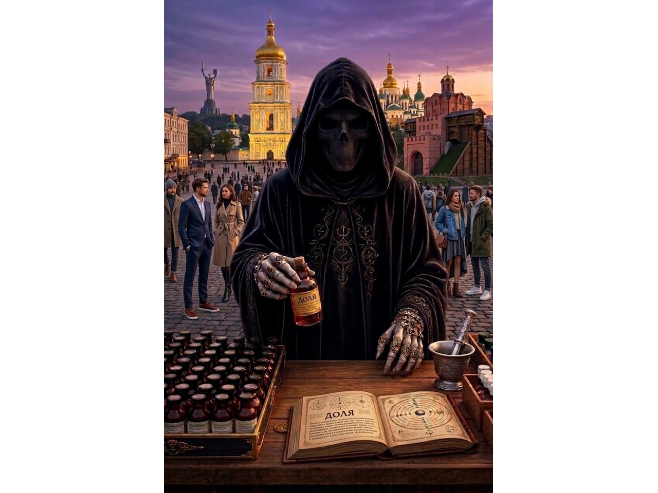 Радість 200гр,Жадібність 400гр,Багатства 500гр,Краса 300гр, Щастя 300гр,Свобода 400гр,Розум 200гр,Кохання 400гр, Мужність300гр, Мудрість 400гр, Везіння 300гр,Совість безкоштовно...