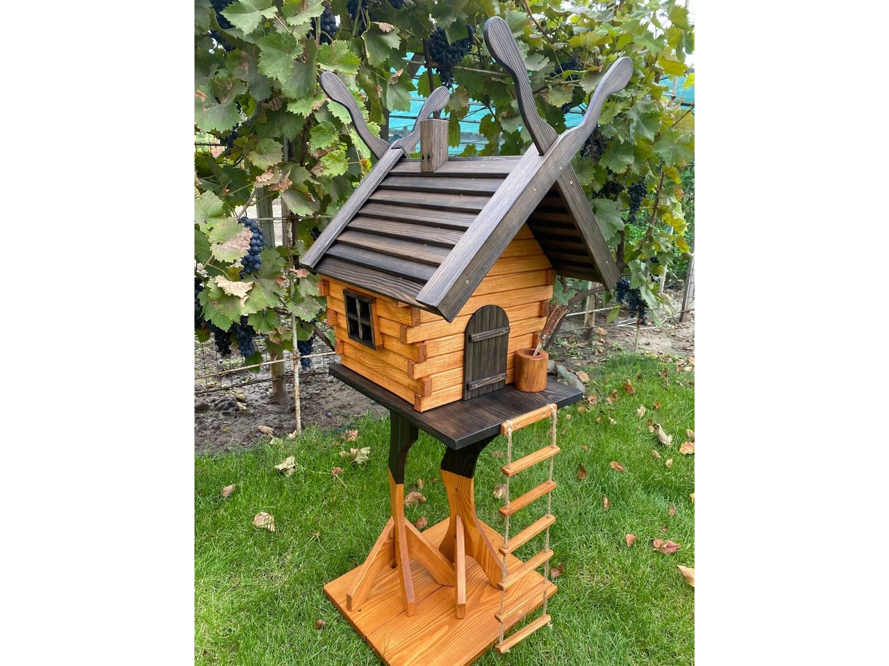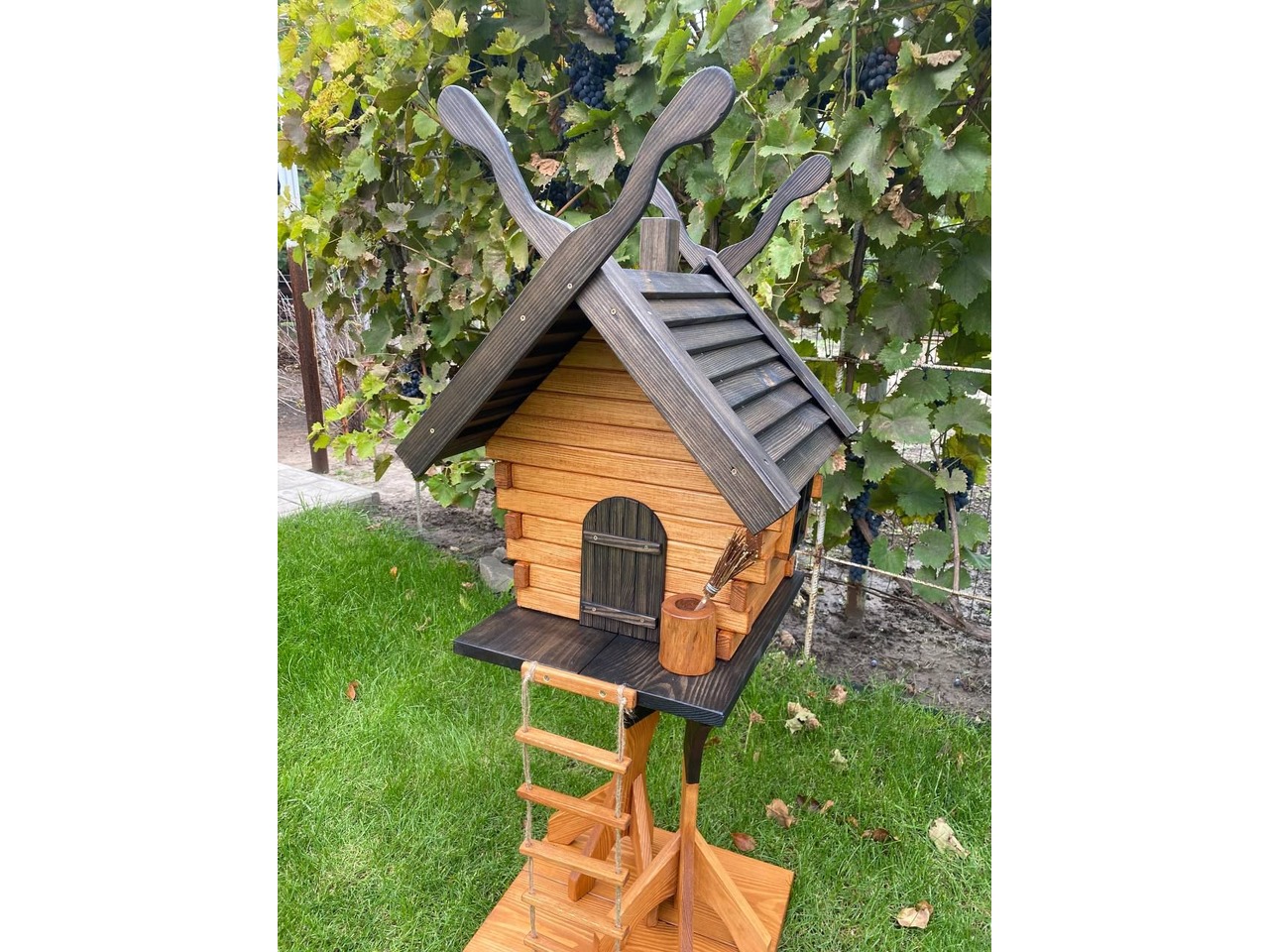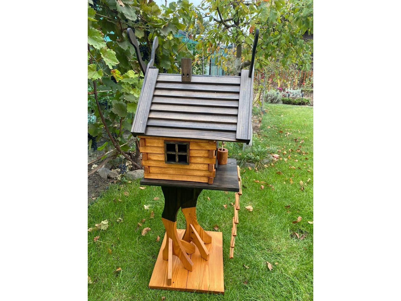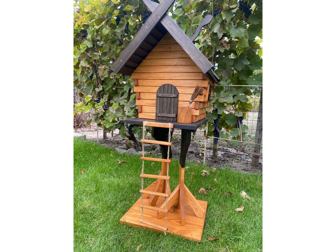 Казковий елемент декору - дерев’яна хатинка на курячих ніжках. Створена вручну з натуральної деревини. Це оригінальний декоративний акцент, який гармонійно впишеться у сад, подвір’я, фотозону чи тематичний простір для дорослих.Розміри:
