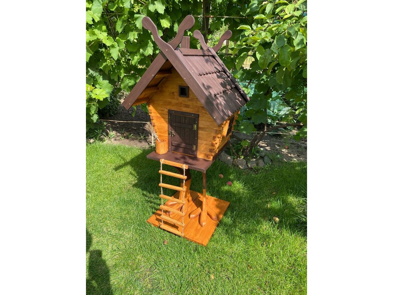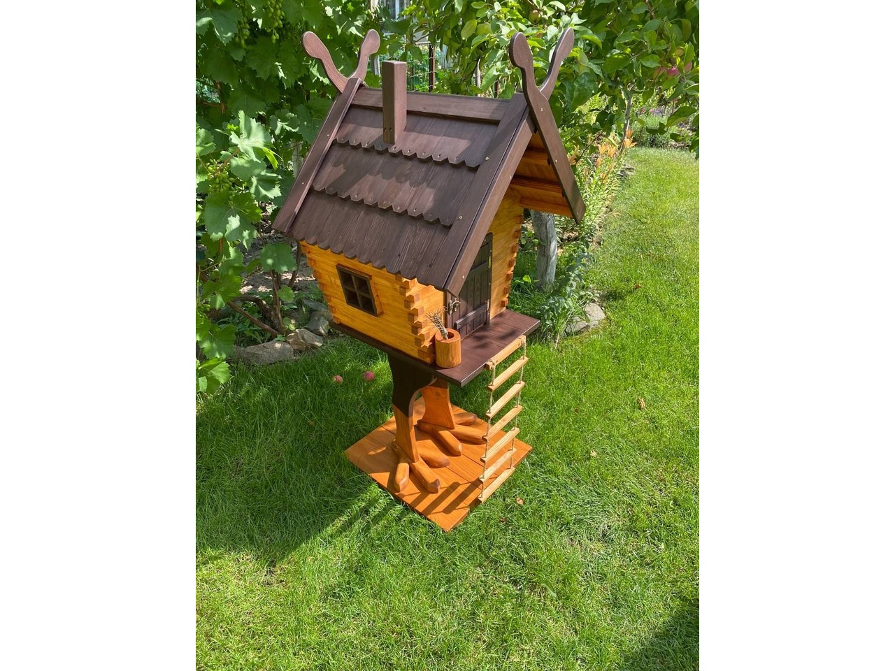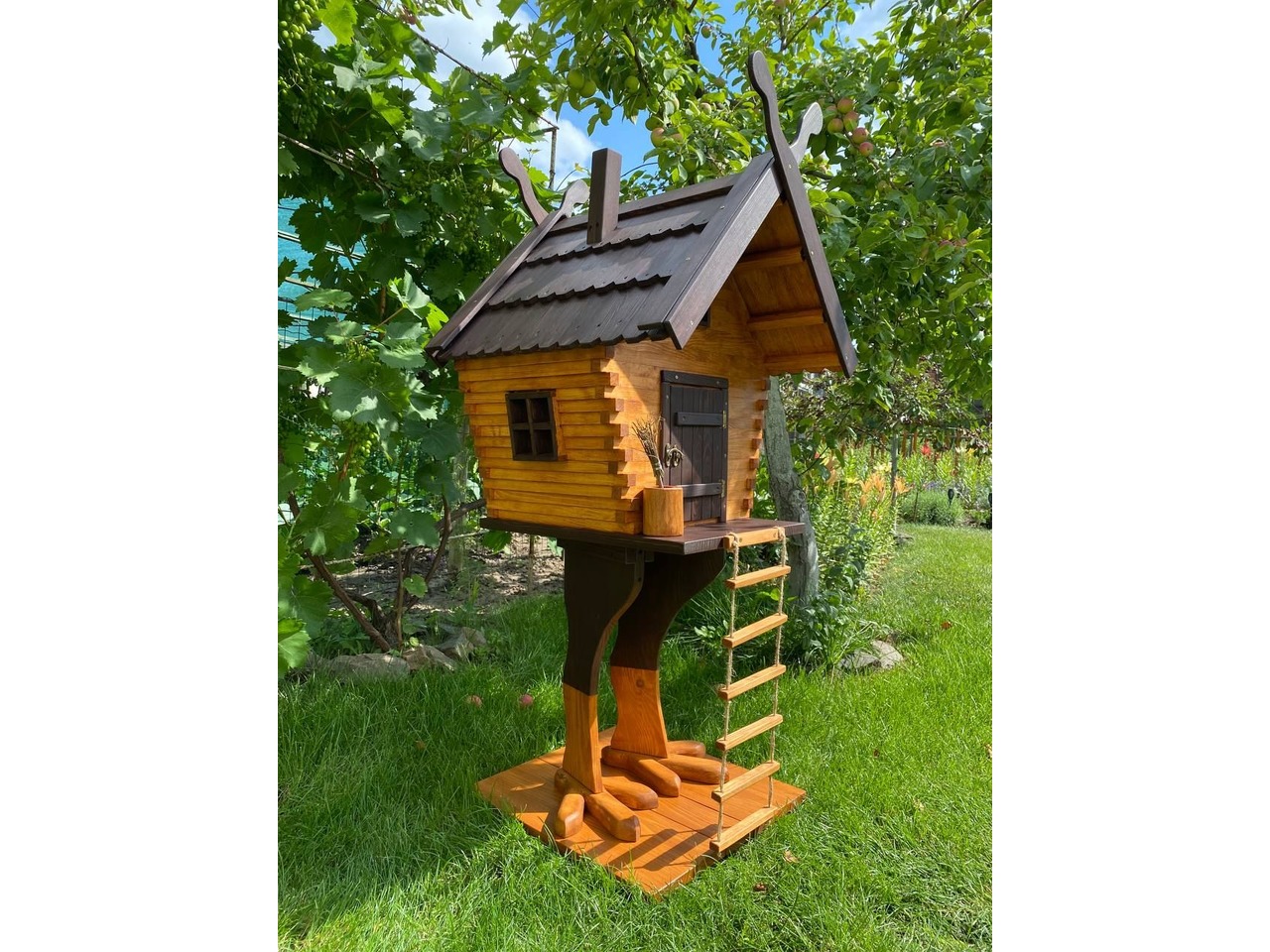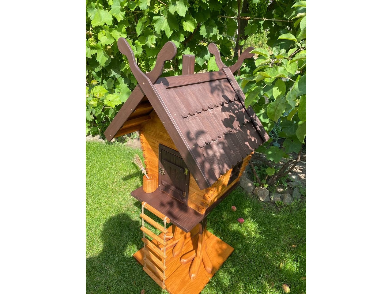 Хатинка на курячих ніжках 4 (120 см.)Казковий елемент декору - дерев’яна хатинка на курячих ніжках. Створена вручну з натуральної деревини. Це оригінальний декоративний акцент, який гармонійно впишеться у сад, подвір’я, фотозону чи тематичний простір для дорослих. Брусочки, з яких зроблені стіни хатинки, - тонкіші і дах зроблений із черепичок.
