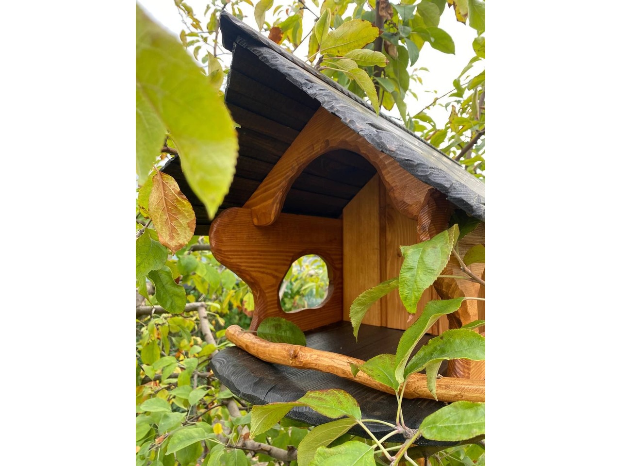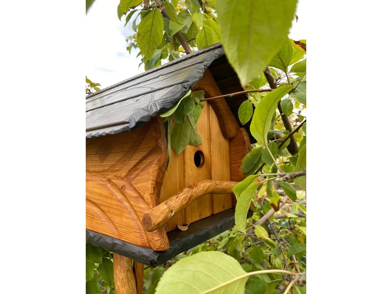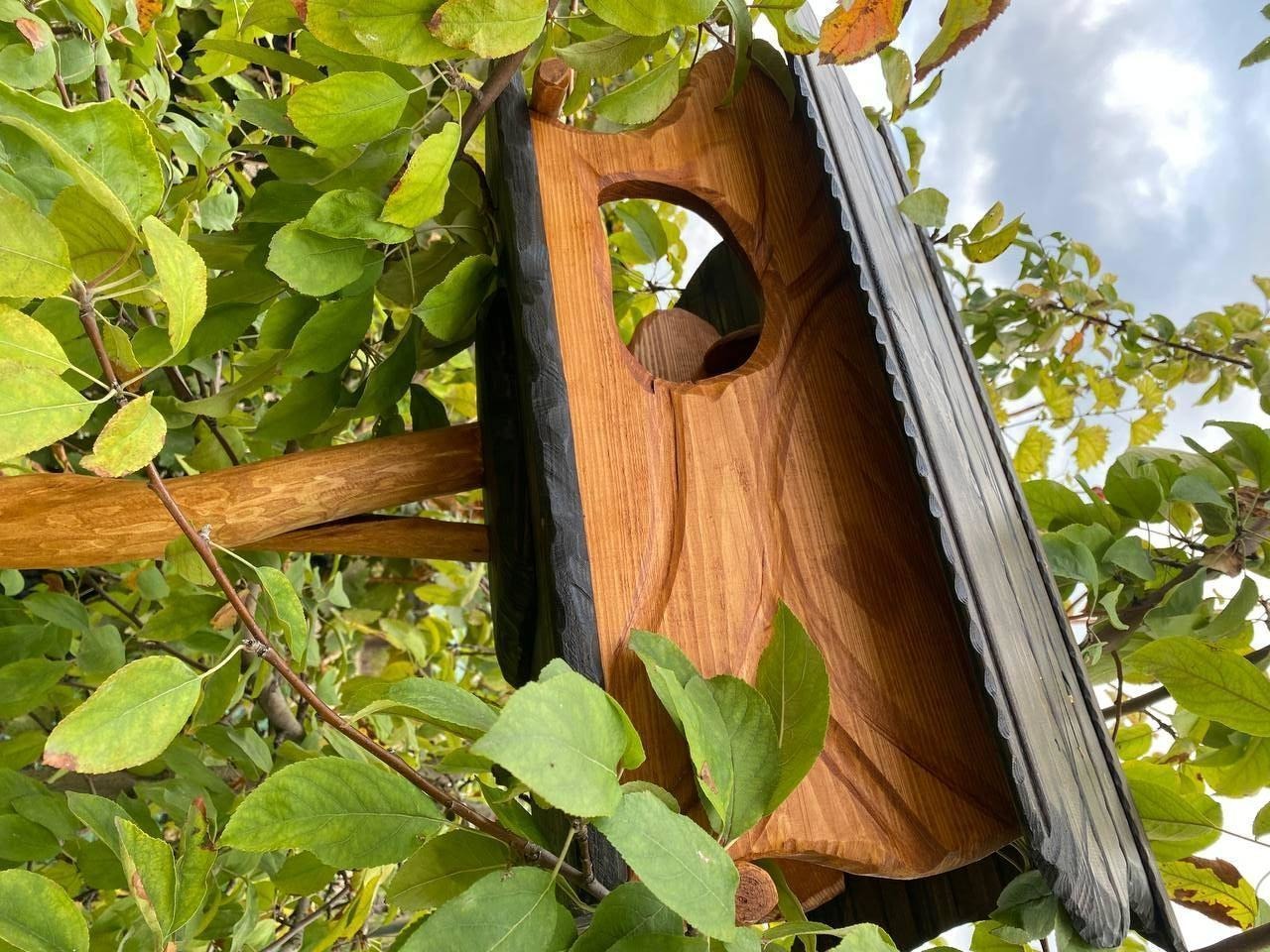 Годівниця-шпаківняПропоную якісну годівницю-шпаківню, виготовлену з натуральної сосни та покриту аквоантисептиком у кольорах венге або тік. Має стильний вигляд і чудово підходить для двору, саду чи зони відпочинку.