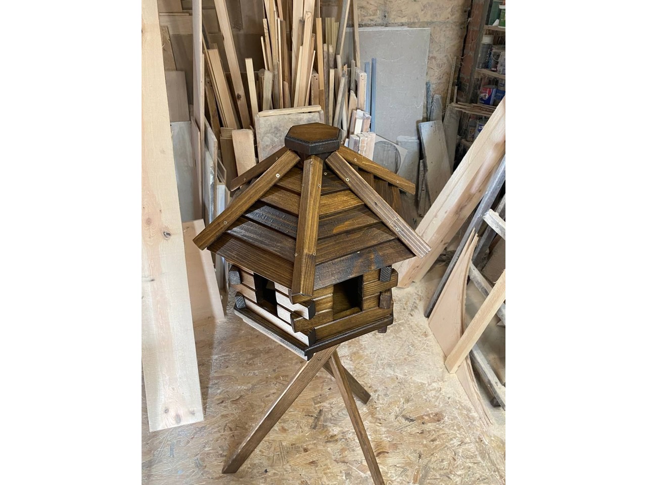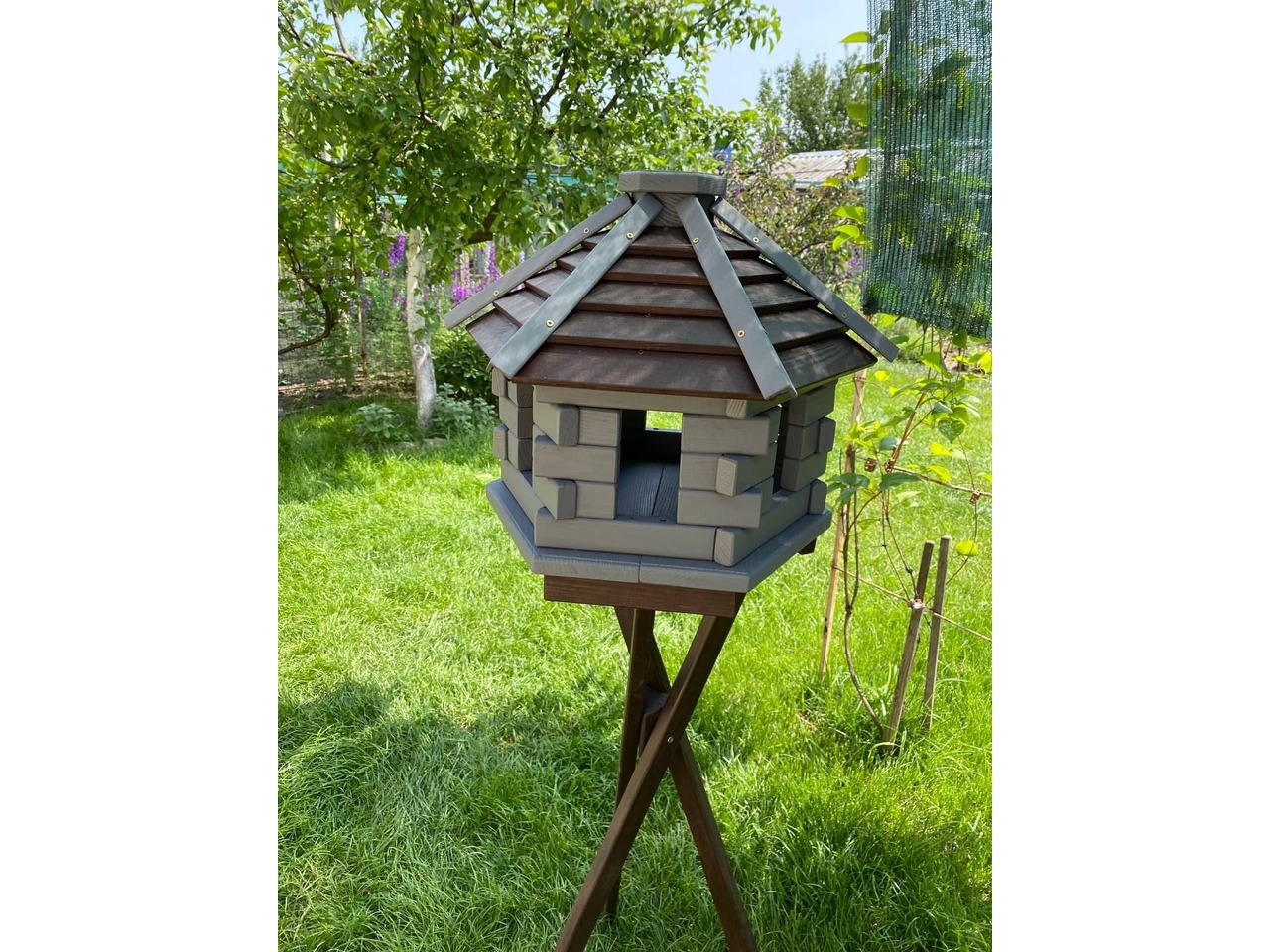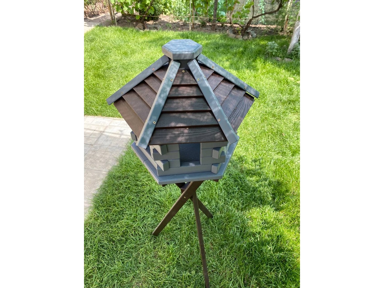 Шестигранна годівниця на тринозіПропоную одну з найходовіших моделей разом із хатинками на «курячих ніжках» — шестигранну годівницю, яка стане яскравою прикрасою двору чи саду та улюбленим місцем для птахів.