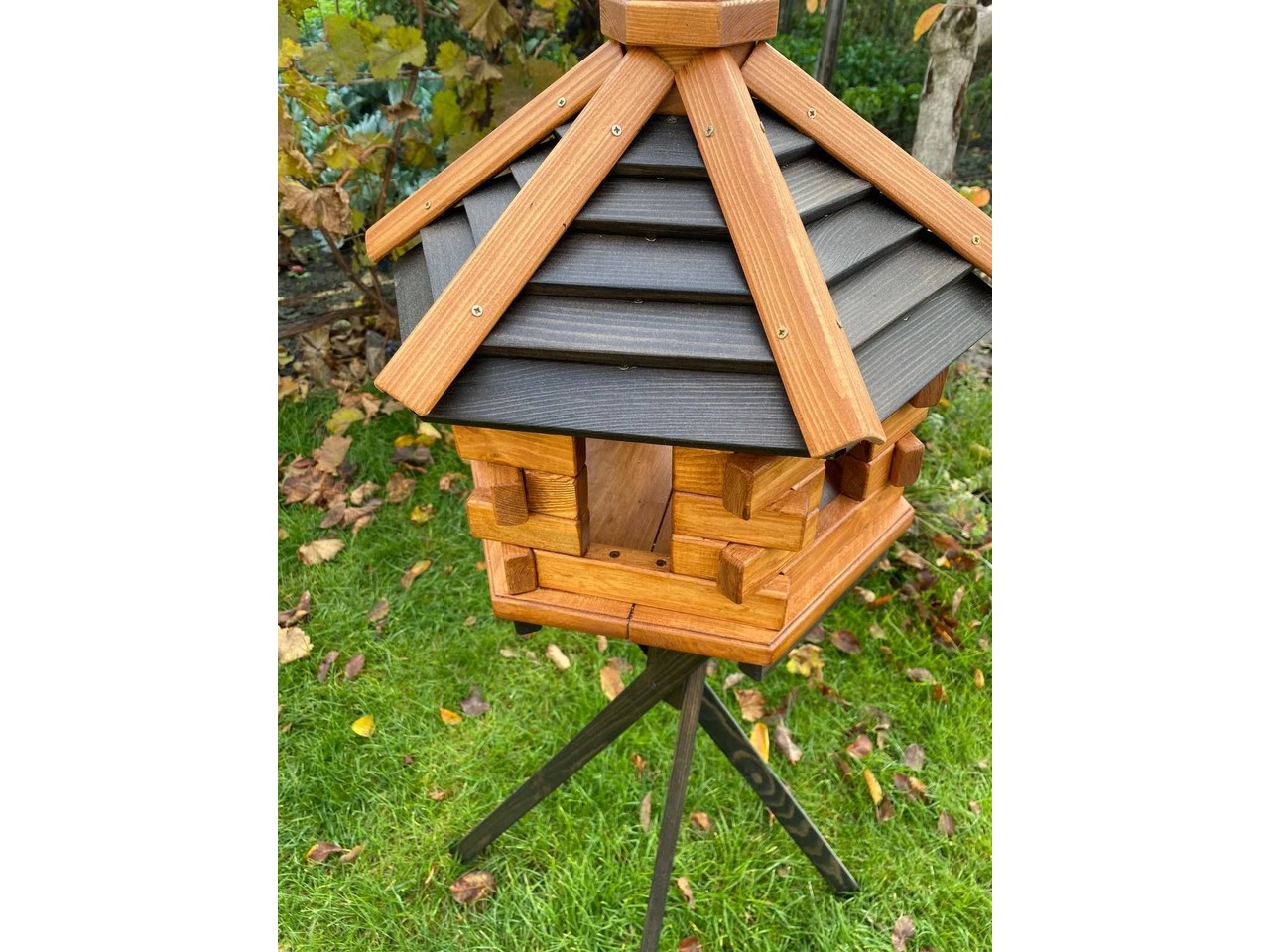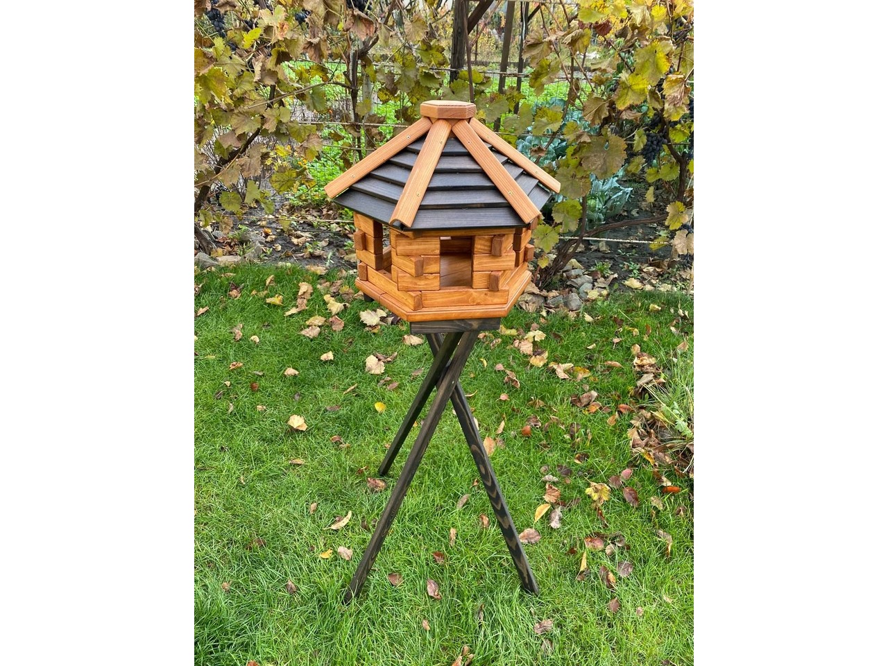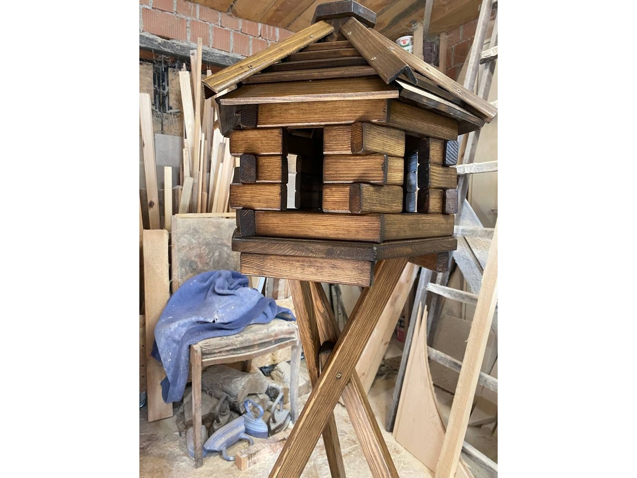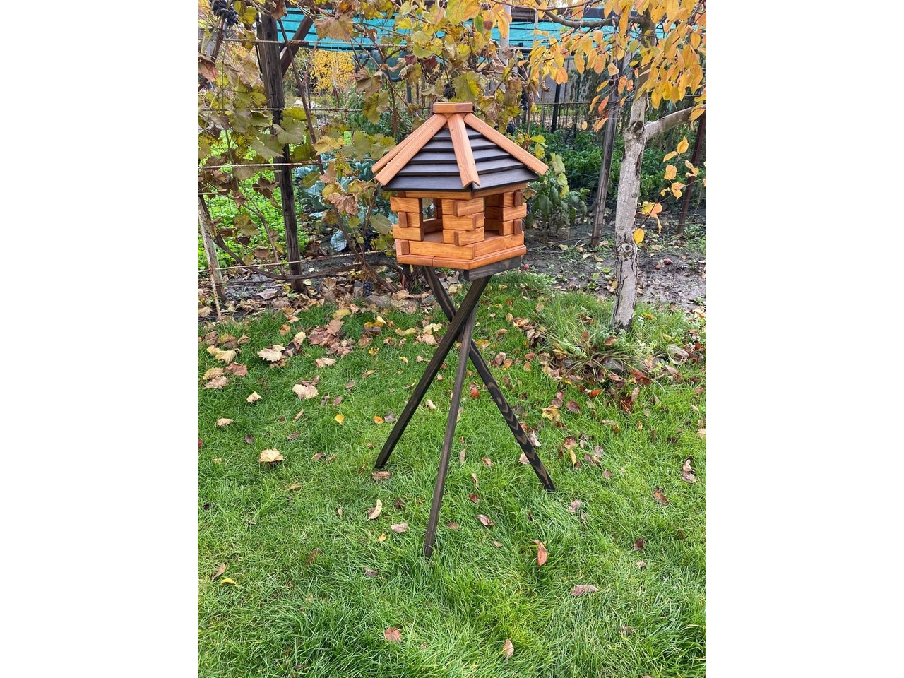 Шестигранна годівниця на тринозіПропоную одну з найходовіших моделей разом із хатинками на «курячих ніжках» — шестигранну годівницю, яка стане яскравою прикрасою двору чи саду та улюбленим місцем для птахів.