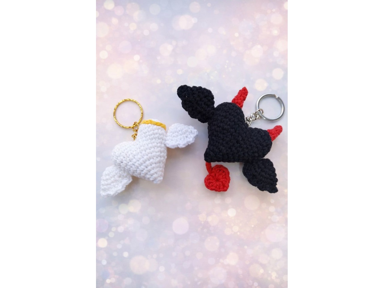 Брелоки в вигляді сердечок з крильцями. Ціна вказана за один. Розміри: біленький - висота 4,5 см, ширина з крильцями 9 см; чорний - висота 6 см, ширина- 10 см.Відправляю у подарунковому прозорому пакеті та картонній поштовій коробочці.