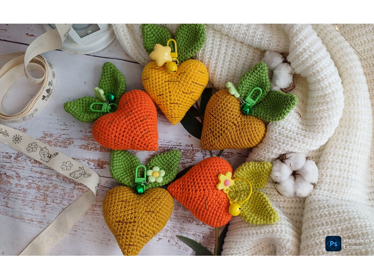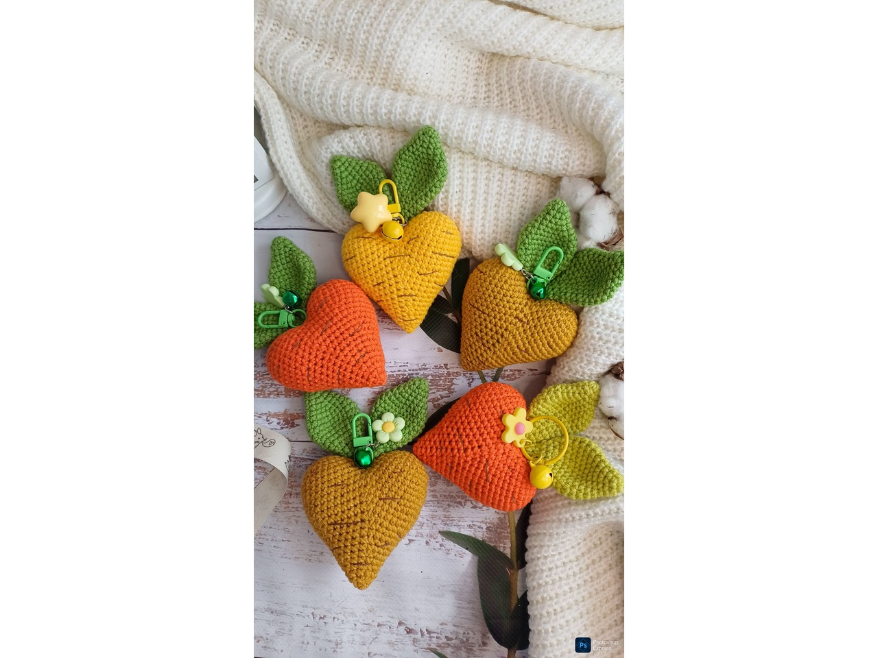 Об′ємні морквини з зеленими листочками у різних відтінках — від світло-жовтого до насиченого помаранчевого.