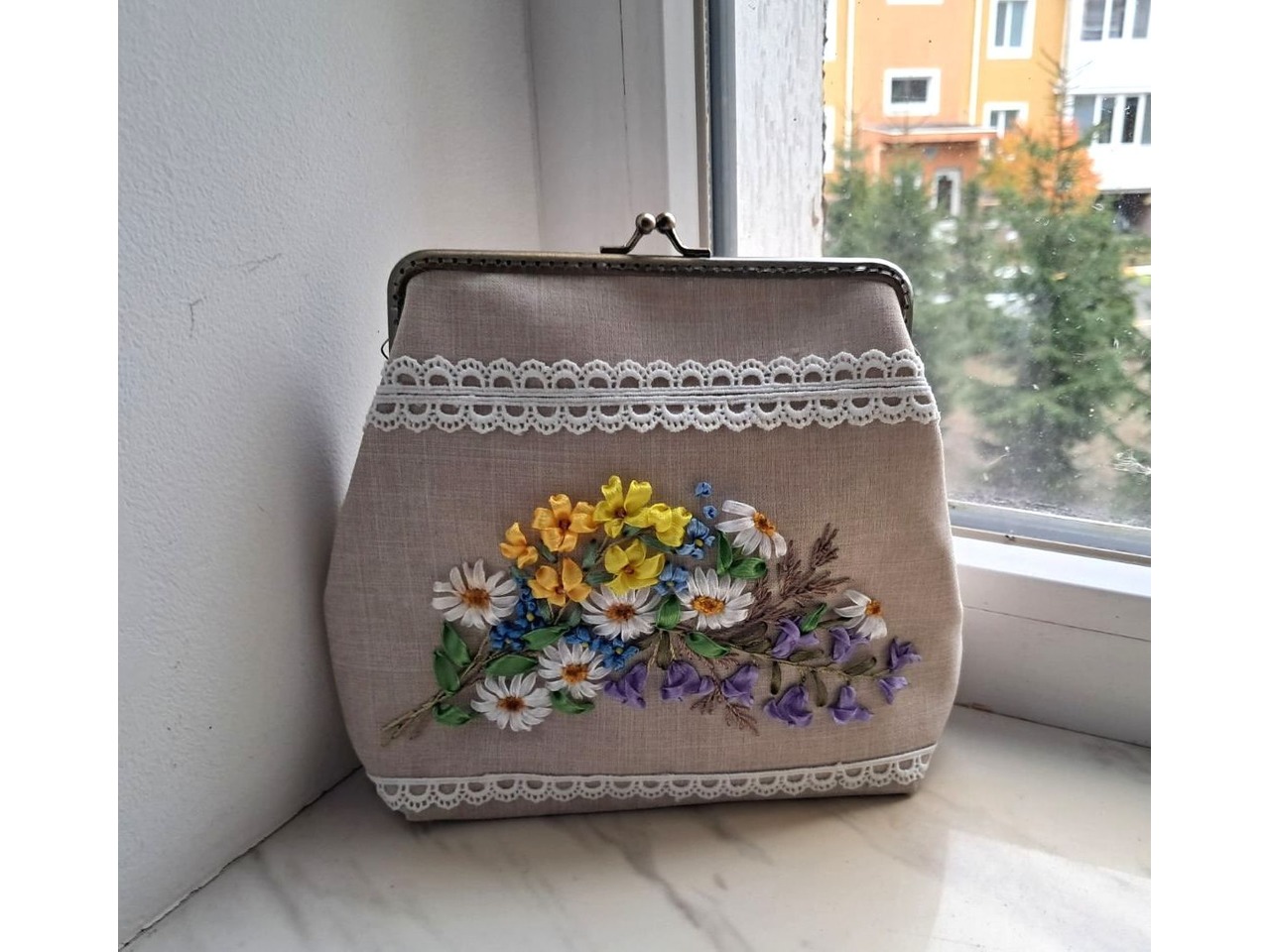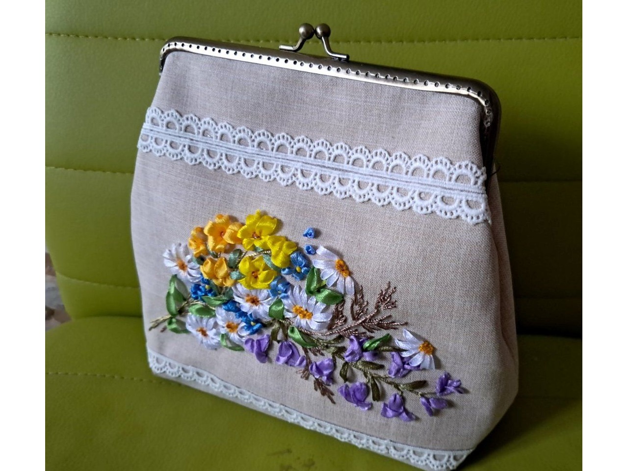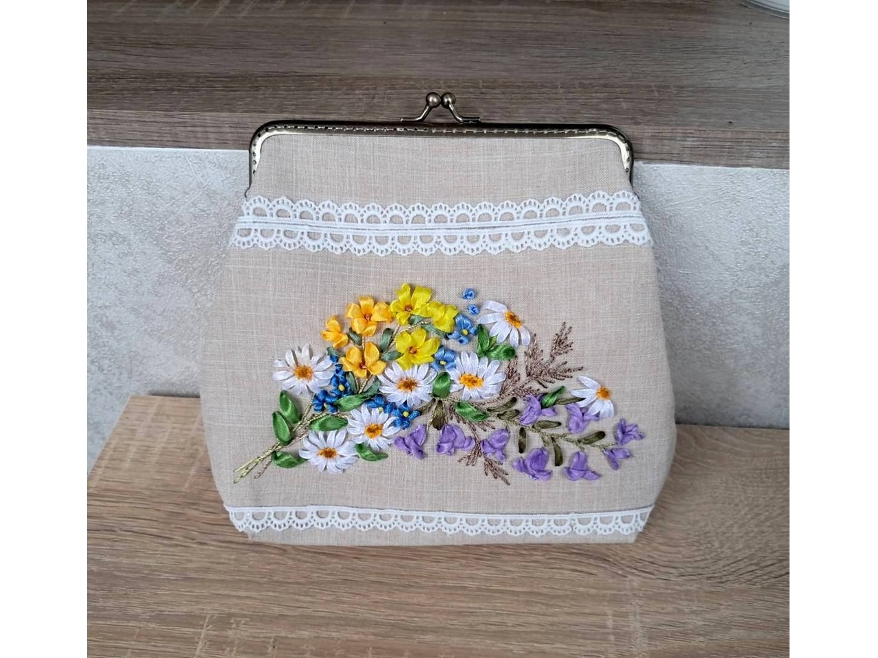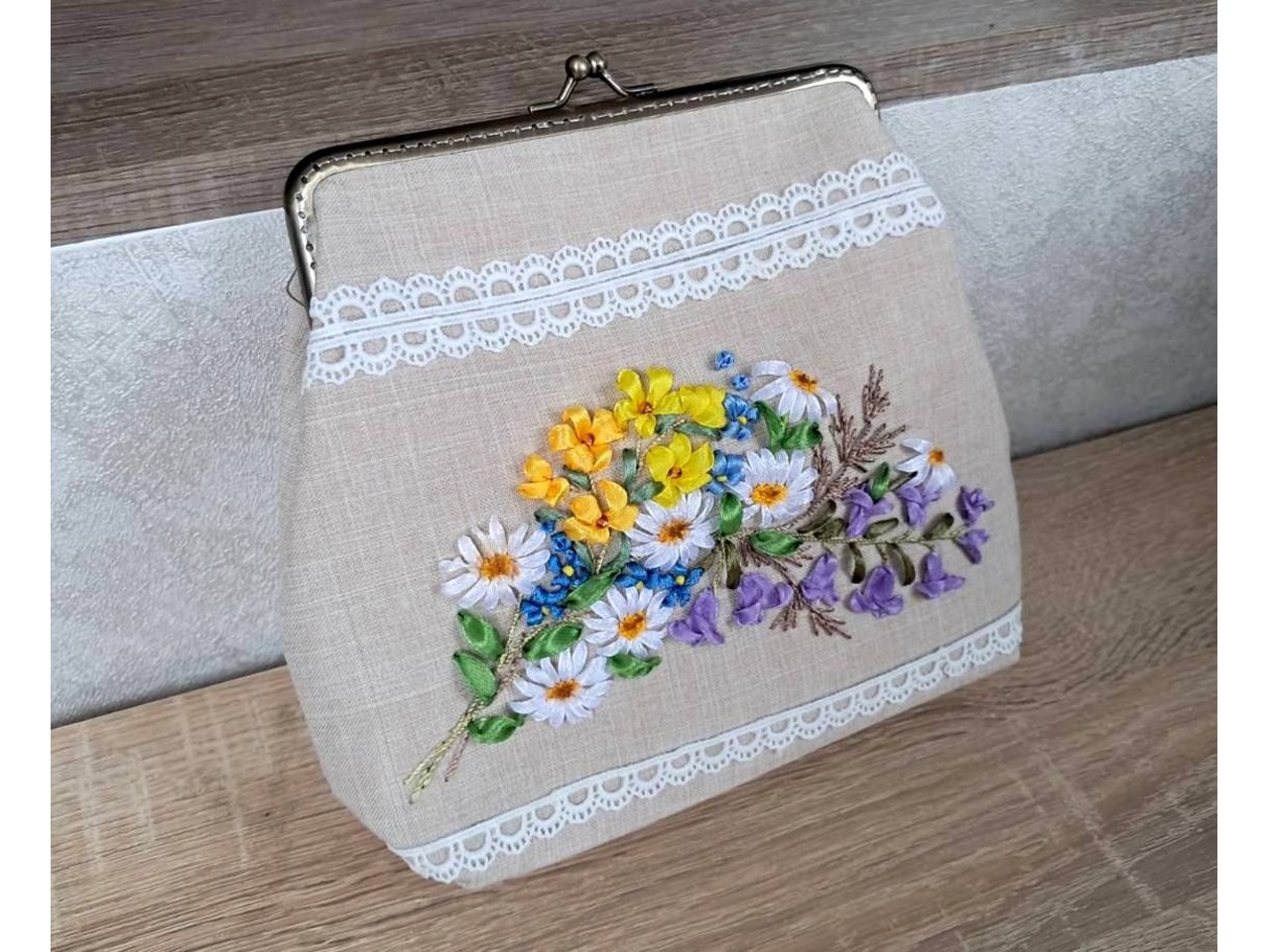 Косметичка "Польові квіти" з вишивкою стрічками