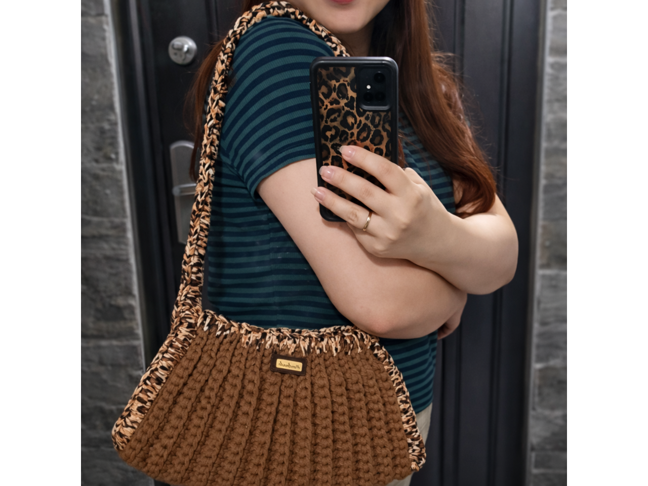 Стильная сумка ручной работы в трендовом сочетании цвета кофе и леопардового принтаИдеальный аксессуар для тех, кто любит выделяться, оставаясь элегантной.