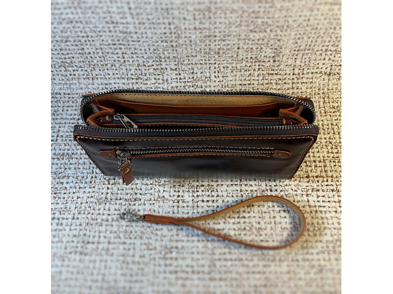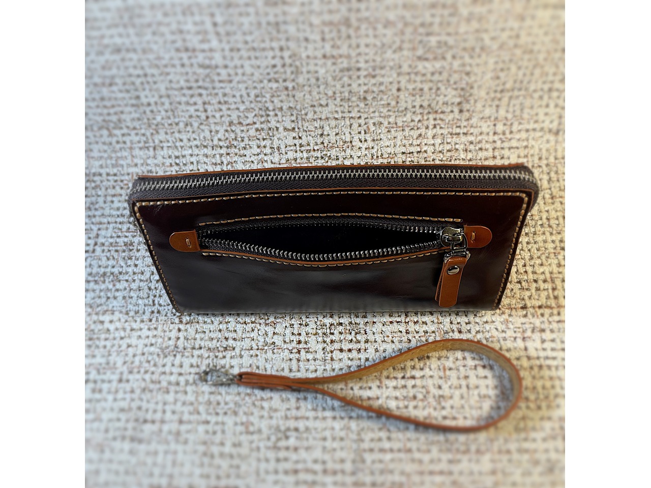 Стильний клатч, виготовлений із високоякісної натуральної шкіри (включаючи підкладку).Виріб повністю ручної роботи, прошитий вручну без застосування швейної машинки.