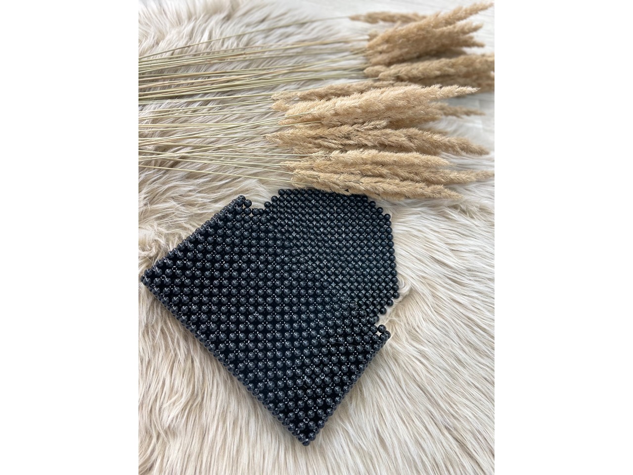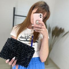 Сумка ручної роботи у спокійному блакитному кольорі, виконана з міцного поліефірного шнура. Стильний ланцюг у комплекті дозволяє носити сумку на плечі або через плече.