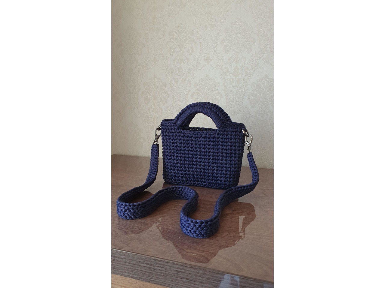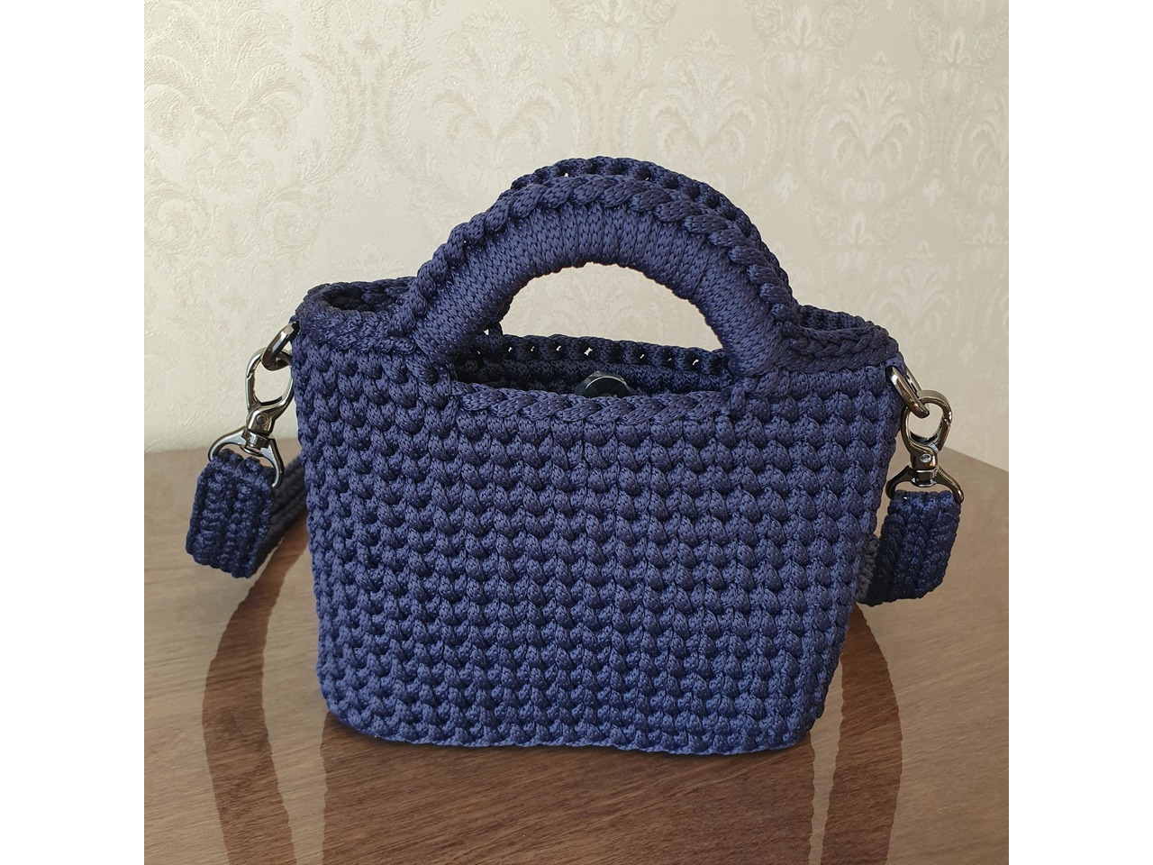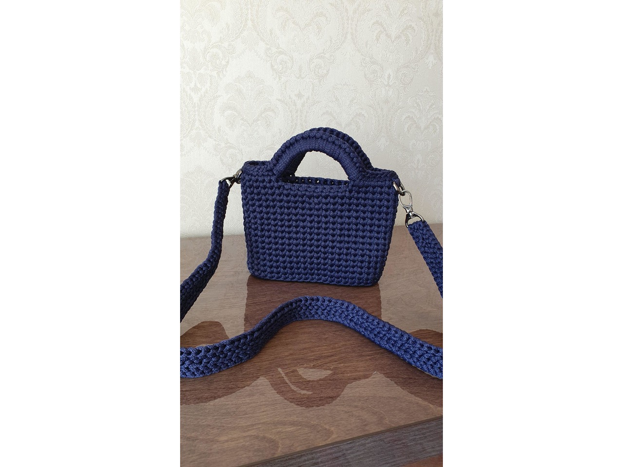 Має коротку ручку для носіння в руці та знімний довгий ремінець на карабінах — можна носити на плечі або через плече. Ідеально доповнить як повсякденні, так і більш елегантні образи.