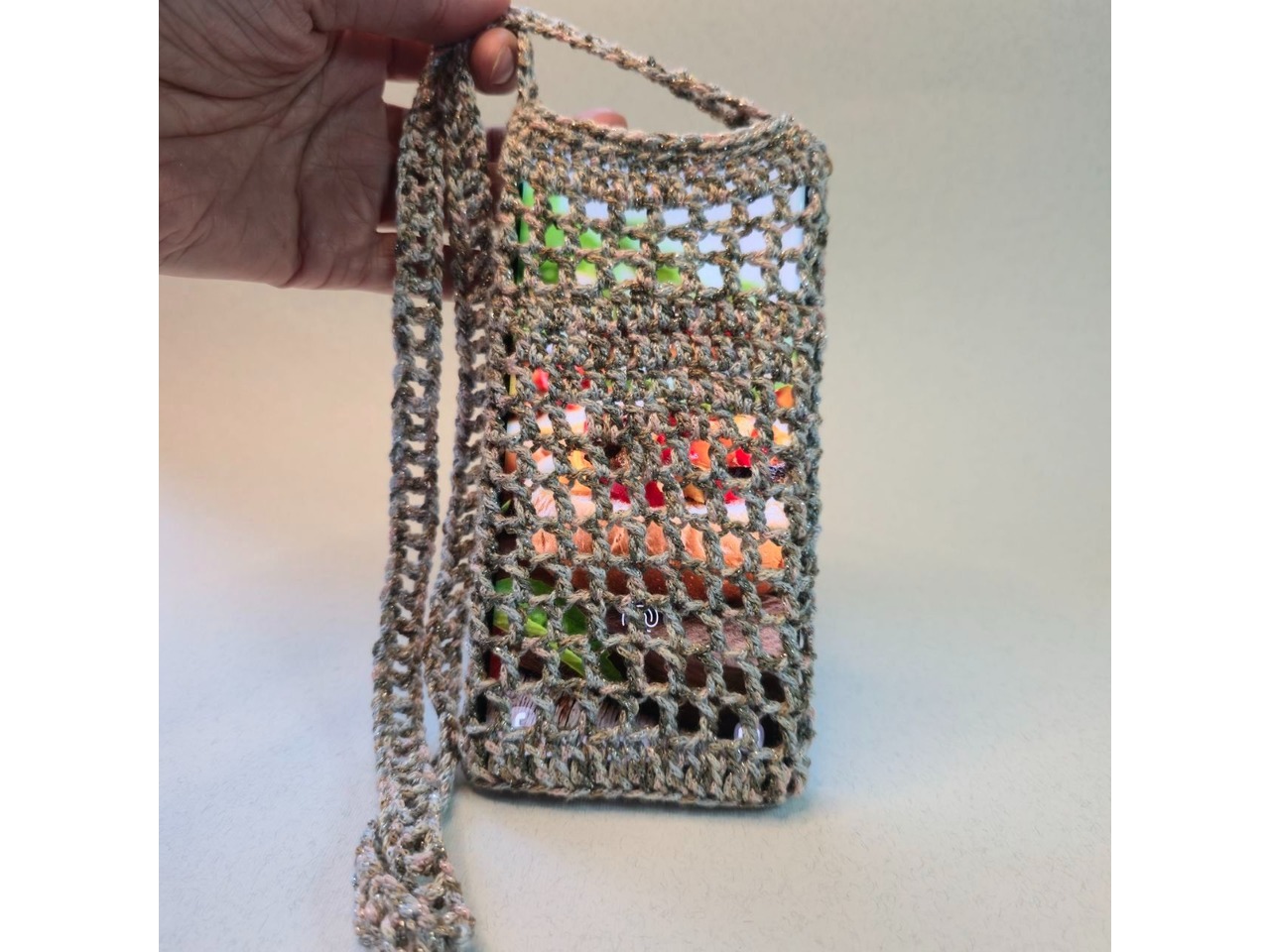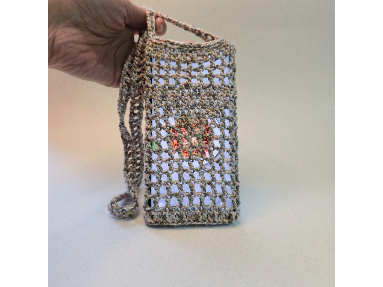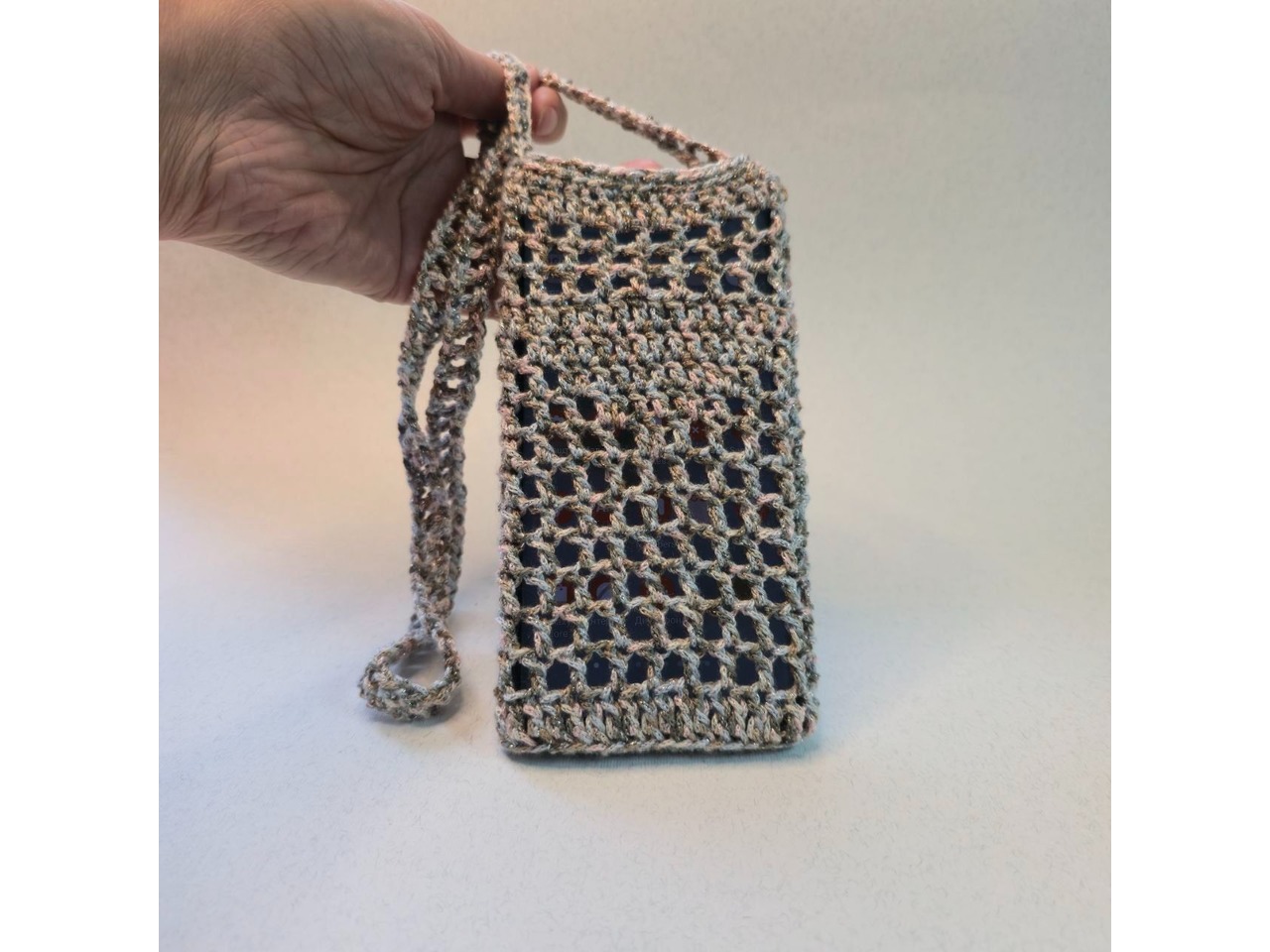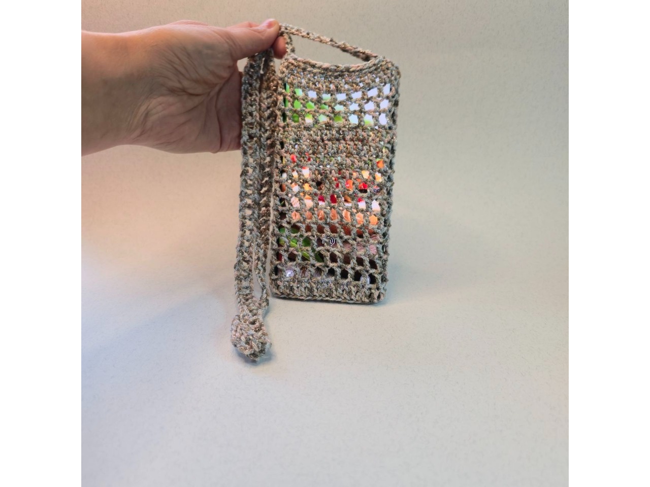 Вязана сумочка-тоут для телефону через плече, меланжева, ручна робота