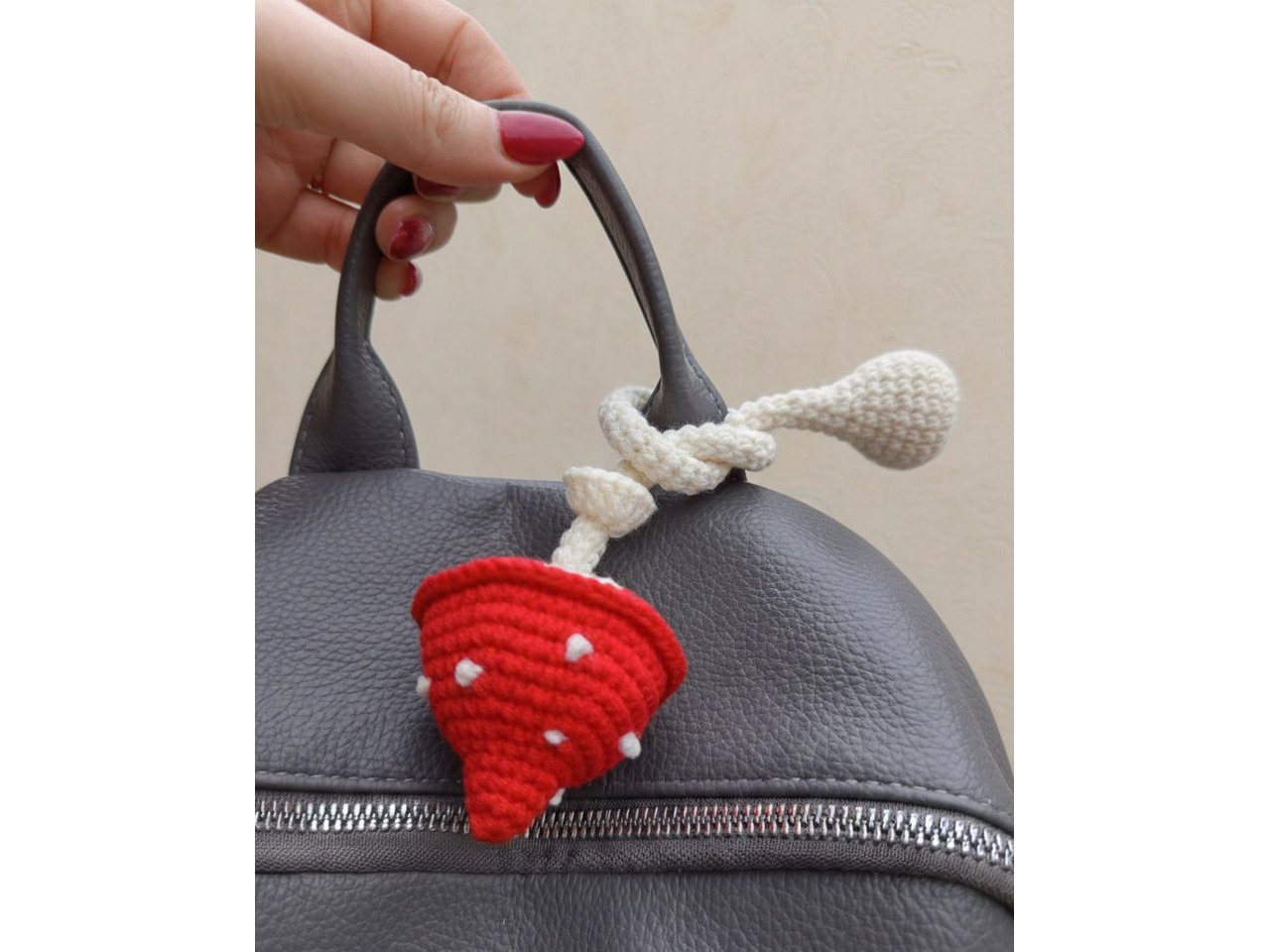 Мухомор на довгій ніжці, зав'язка для рюкзака чи сумки, автомобільного дзеркала і просто для гри. Гратись можна навіть малюкам. Мухоморчик не має дрібних деталей. Повна довжина 30 см. Наповнювач - холлофайбер.Можливе виготовлення у декількох екземплярах.