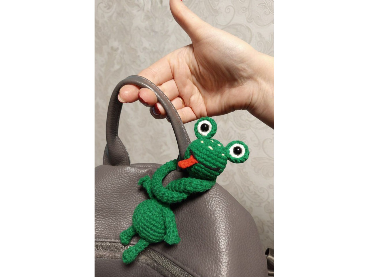 Жабка, зав'язка для рюкзака, автомобільного дзеркала і просто для гри. Довжина разом з шиєю 30 см. Наповнювач - холлофайбер. Очі на безпечному кріпленні.Можливе виготовлення у декількох екземплярах.