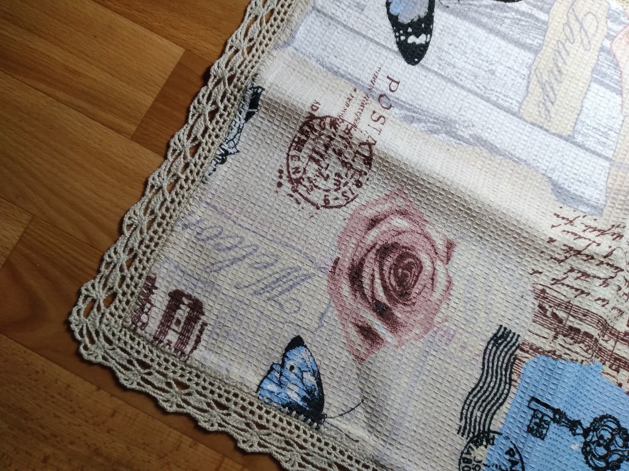 Полотенце вафельное, с ажурной каймой, ручная работа, ручная сборка, для праздничного настроения хозяйки и гостей. Размер 570×450 мм.