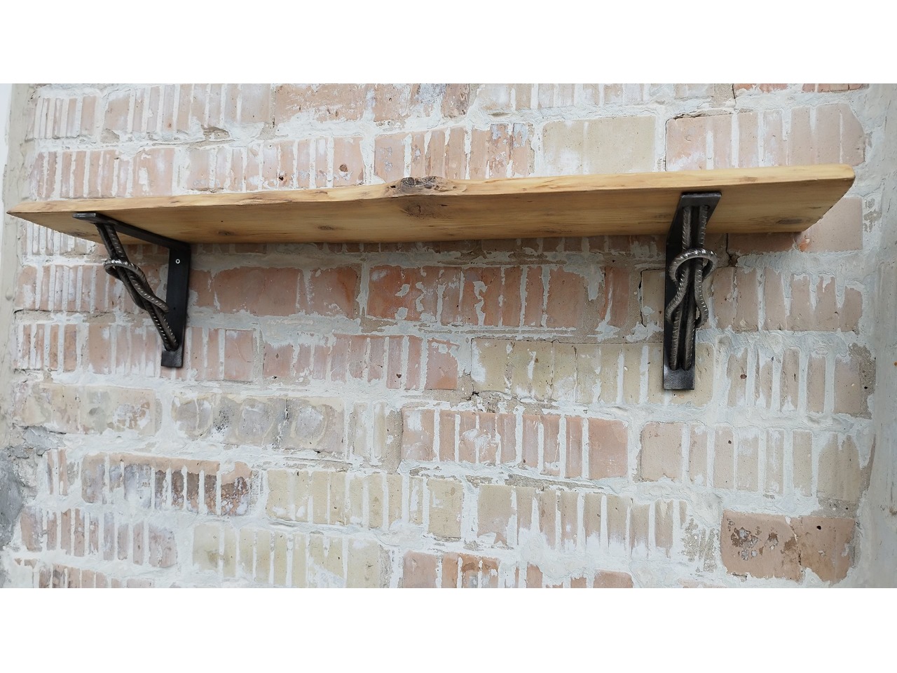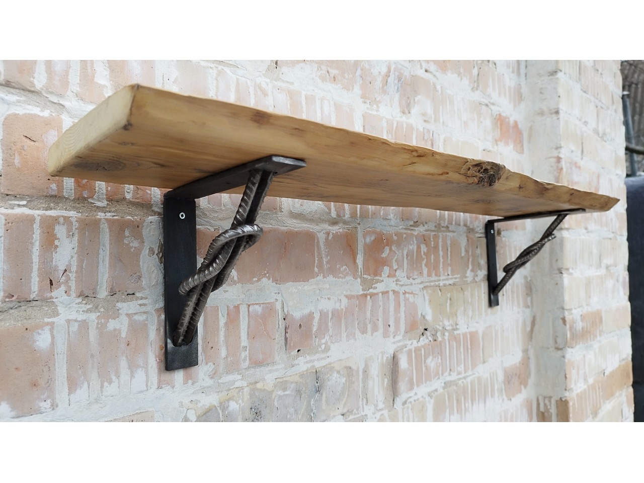 Настінна полиця в стилі лофт з натурального дерева та металу