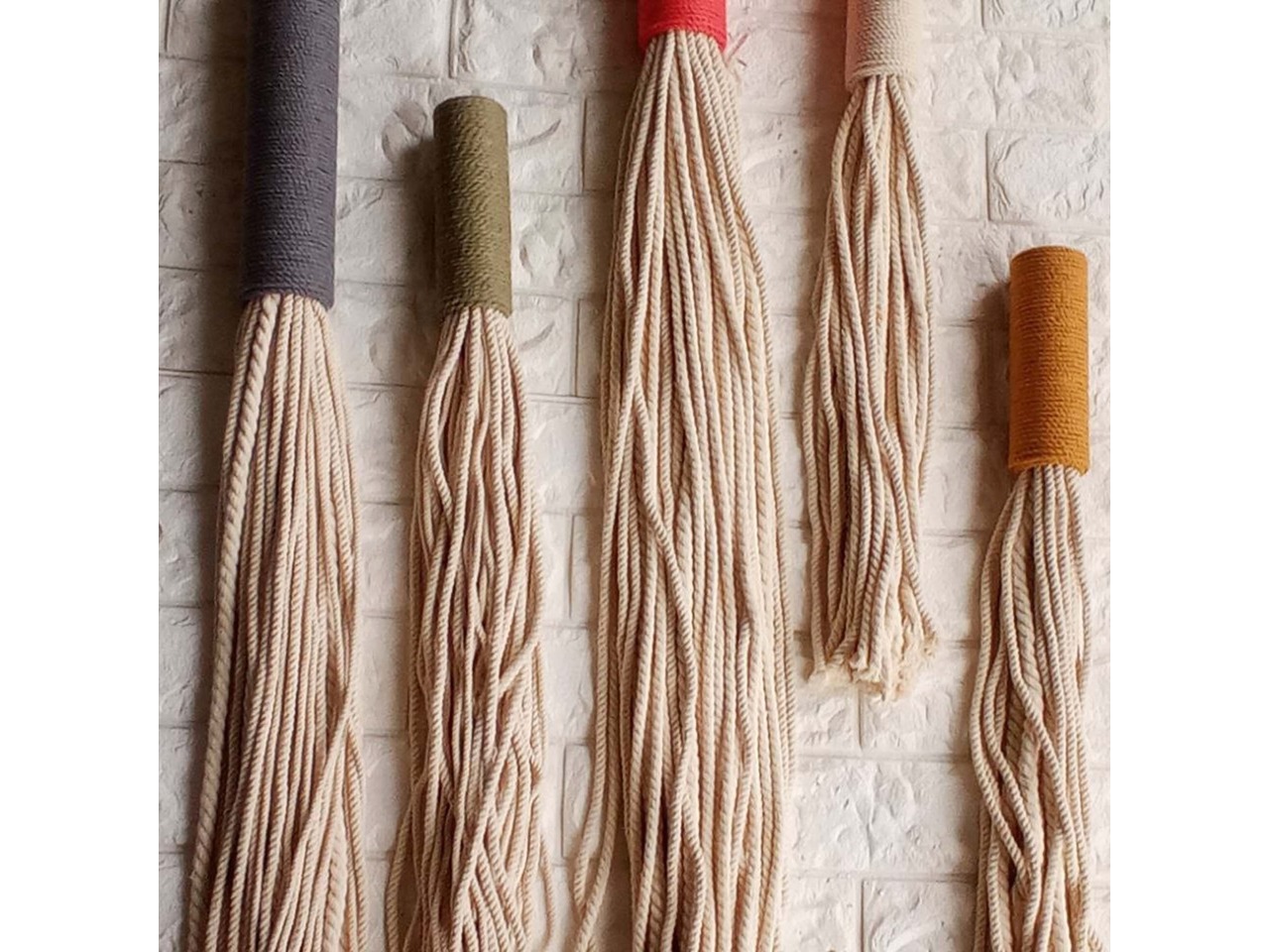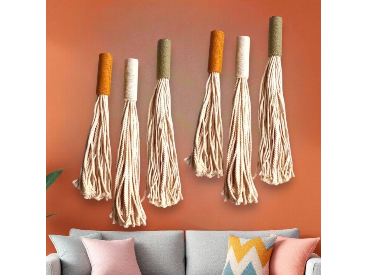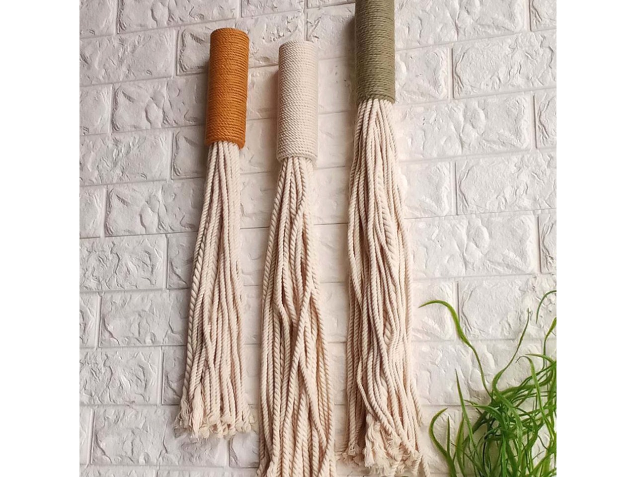 Представляємо колекцію настінних прикрас «Кисточки» — стильний та універсальний елемент декору для вашої оселі. Виготовлені повністю з натурального бавовняного канату, вони додають інтер’єру богемного шарму та затишку.• Верхня частина виконана у вигляді трубки, оздобленої кольоровим бавовняним канатом