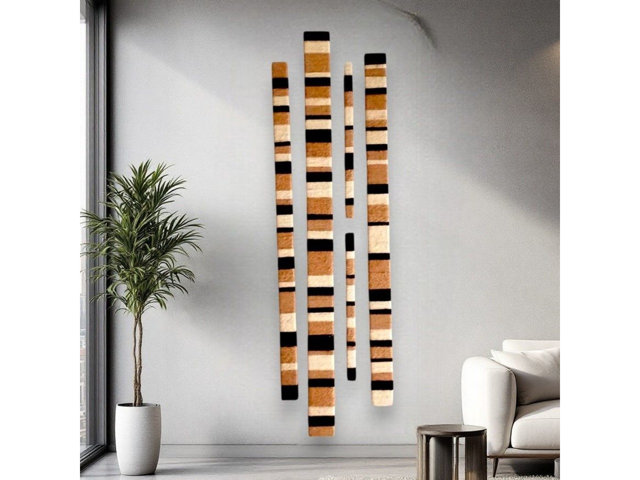 Оригінальний настінний декор у стилі лофт, який стане яскравим акцентом у вашому інтер’єрі.Кожна планка виготовлена з натурального дерева та оздоблена кольоровим джутовим шпагатом.