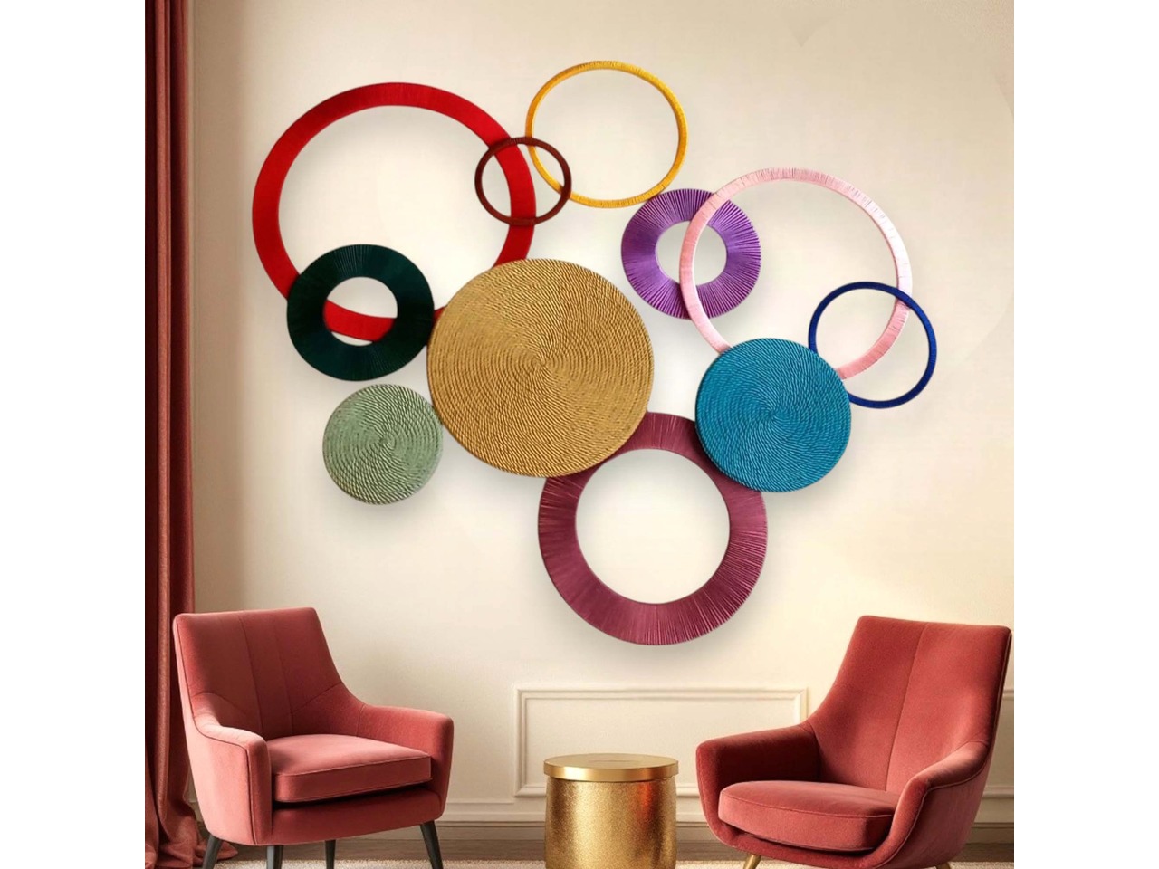 Настінний декор з кілець і кругів. Яскравий сучасний дизайн