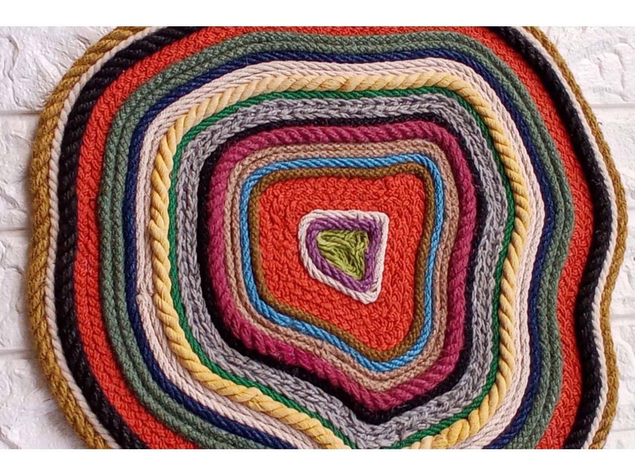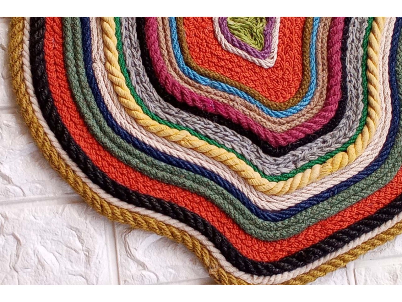 Малюнок неправильної форми наноситься мотузками та канатами з джуту та бавовни.